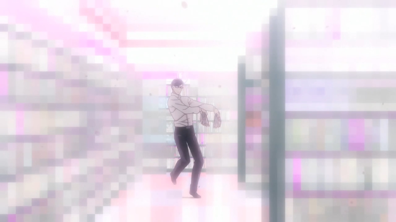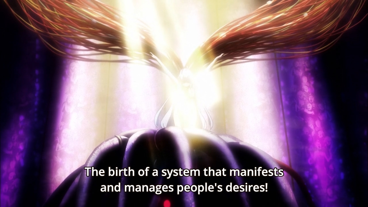 This week, we learn a thing or two about Hiiragi, but it’s nothing special. He and Eiji’s father used to work at a lab where they tried to turn people’s thoughts into energy. As you can probably tell, this technology is the precursor to Daisy. Oh yeah, Daisy is actually an acronym… if you cared. Anyway, it turns out Eiji’s memories have been tampered with, so he doesn’t even remember anything about his old man. It wouldn’t even surprise me if his memories of causing the Great Destruction are false as well. Hell, wouldn’t it be hilarious if she’s the one who fucked everything up instead? Actually, no, that would just be stupid.