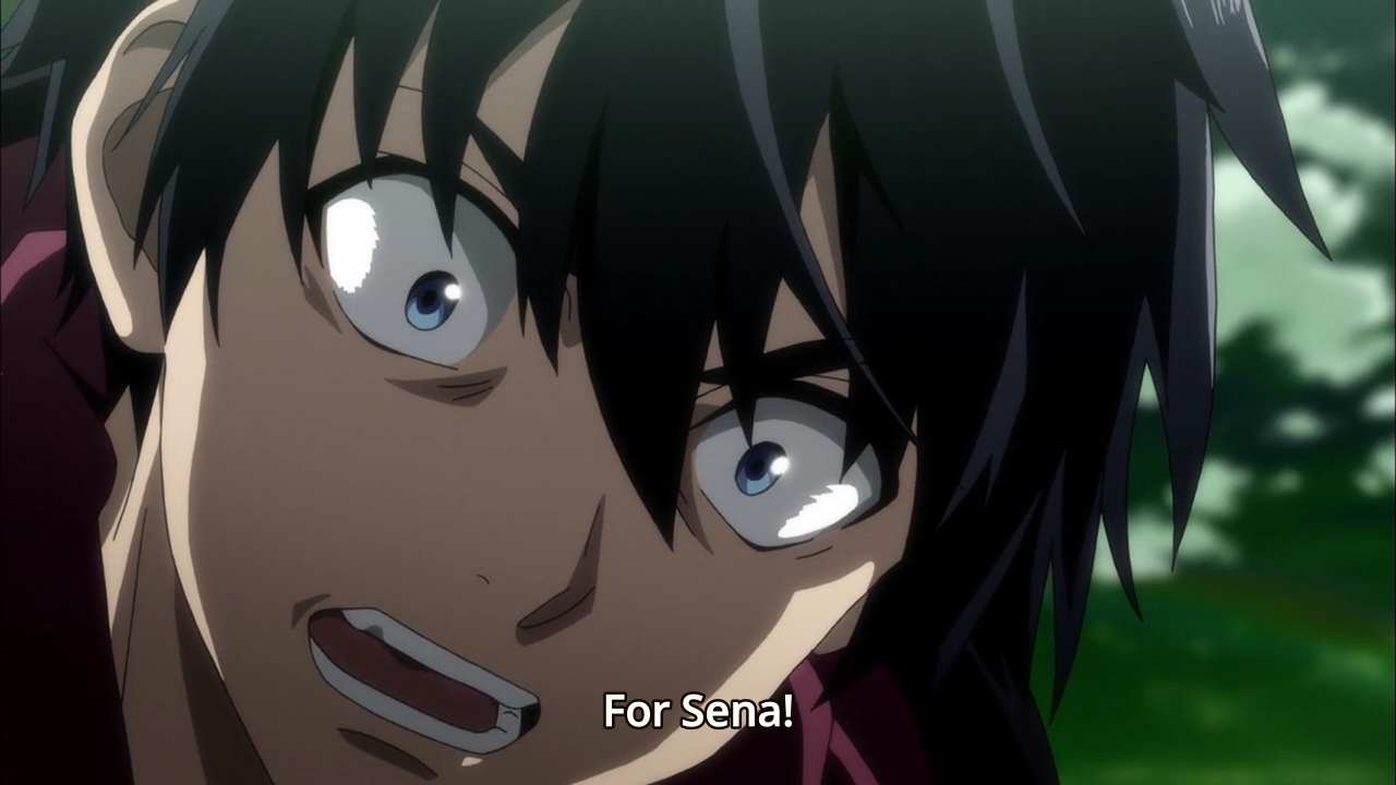 So Hayato and Claire make out much to Emilia’s chagrin, and this somehow allows the rest of the group to overcome the Savage’s barrier. I guess you really only need Claire to be powerful. The rest of them can go fuck themselves. With the barrier down, the harem lead then flies in for the finishing blow, but the resulting explosion sends him into the briny deep. Emilia dives in immediately to rescue her boy toy, and hey, fair’s fair. She, too, gets to kiss the bastard if Claire is allowed to. Personally, I’m not one for sloppy seconds, but haremettes kinda have to get used to this sort of thing. And with that, the episode is over. These shows are so exciting, aren’t they? Yep, that’s it. That’s why I’m left speechless after every episode. Still, Hayato gets more action in a single episode than Ayato ever would in two whole seasons. Maybe that’s why he gets an extra letter to his name.