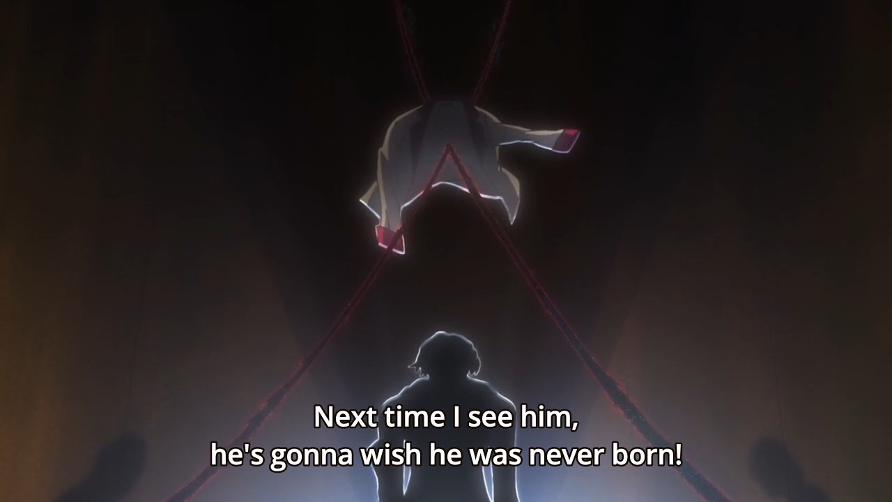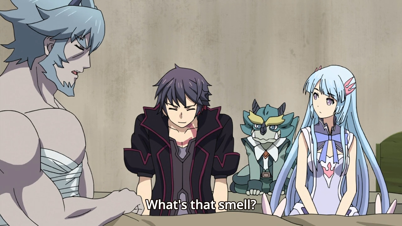 Y’know, I don’t… I don’t even know what to talk about when it comes to this anime anymore. Julis helps Ayato evolve his Ser-veresta, and with it, he defeats the big, giant robot. The end. Wait, no, we still have half an episode left to go. Wait, half? Yep, the second half of this week’s episode is just one boring denouement where nothing really happens. The characters just go around patting cute girls on the head. Shit, I’ve been on this planet for quite some time now, and I’ve never patted a girl on a head. Just my cat’s head. Am I missing out? Is this some sort of transcendent experience? Anyway, the hero’s dumb sister is naked and imprisoned in some creepy dude’s basement… or not a basement. I don’t care. This is the worst show of the bunch. The true nadir of the season (only because I’m not watching the rest of the rejects).