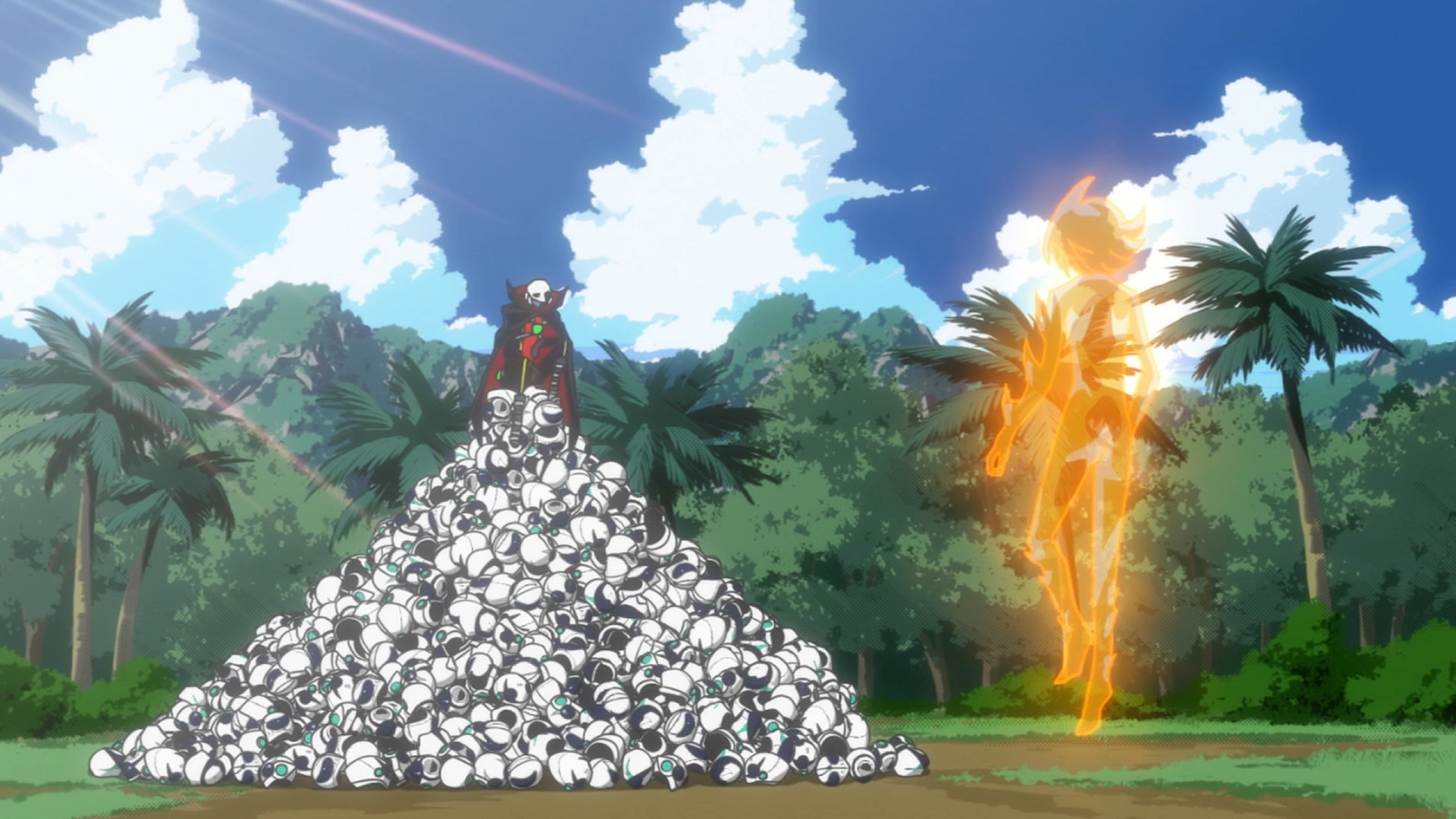 Jiro’s hesitation in this week’s episode comes down to a problem of identity. In his dreams, Claude removed the helmet to reveal Jiro’s own face. So who is Jiro really? Is he the Jiro from the first season, i.e. the boy who claimed he was protecting superhumans, but in reality, he was just another extension of state power? Or does Claude, in all his childish rage for justice, truly represent Jiro? This is the conflict that our hero finds himself unable to resolve by himself, and as a result, he finds himself again unable to act decisively without Fuurouta’s words of encouragement. This is also the same inner conflict that we saw last week. If he had stopped Raito, he would’ve found himself back at square one, i.e. turning back into the Jiro from the first season. If he had instead joined Raito in destroying the NUTS robots, however, then he would’ve given in to his inner Claude — the inner desire for mayhem that Megasshin accused Jiro of secretly harboring. But don’t get me wrong. I’m not trying to draw a false equivalency between these two opposing sides. I’m not the sort to say that there are many conceptions of justice, and that the truth lies somewhere in the murky middle. Rather, I truly believe — as most of us all believe — that the Japanese government in Concrete Revolutio is beyond corrupt, and furthermore, Jiro needs to do more to fix this problem. Nevertheless, what’s problematic about Claude isn’t his pursuit of justice, but rather, why he pursues it. You can’t pursue justice simply because it gives you pleasure. Otherwise, it becomes fetishistic. What’s ultimately childish about Claude is that it isn’t about making people’s lives better. And I know people will argue that justice is for justice’s sake, but I disagree. What is the point of justice if everyone ends up being worse off?