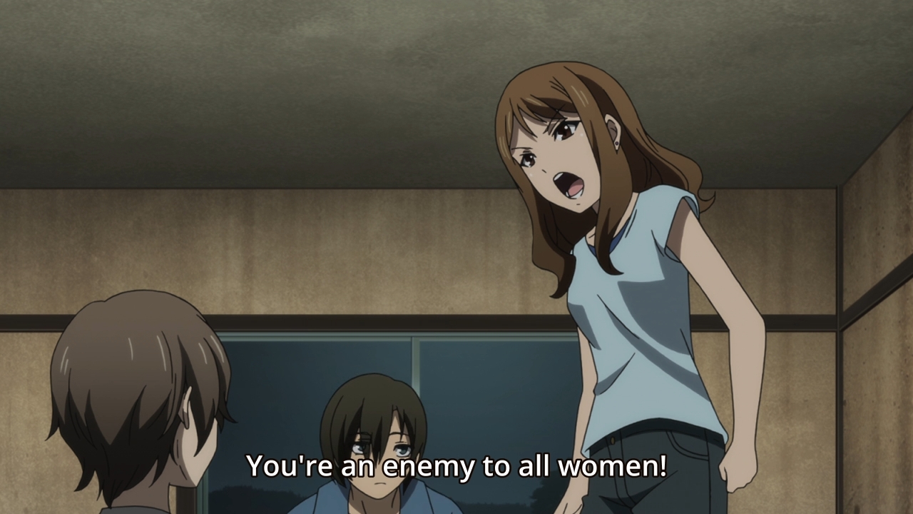 — He mentions how everyone he knows has gradually disappeared, but it’s not as though they were his friends or anything. He only really talked to Masaki, but even then, he calls it a one-way love. He doesn’t care for her as much as she seems to care for him. This enrages Maimai for obvious reasons, and she calls him the worst kind of man. I dunno, I think there are worse… like sex traffickers, pimps, abusers, so on and so forth.