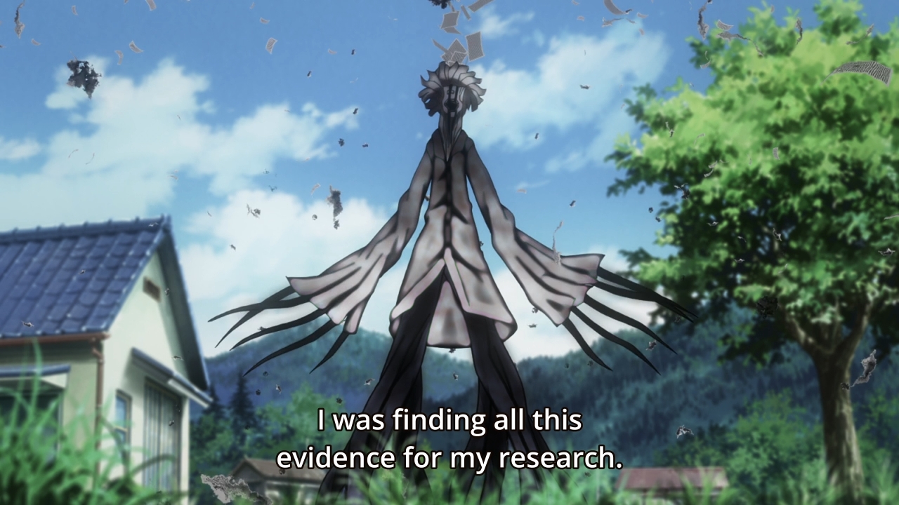 — We cut back to God, and he… uh, he tells us the exact same thing: “Nanaki Village is a place where your psychological scars materialize as Nanaki.” I don’t understand why the show feels the need to repeat this fact twice. Not only that, it’s a fact that most of the audience — and even some of the characters themselves — have long deduced.