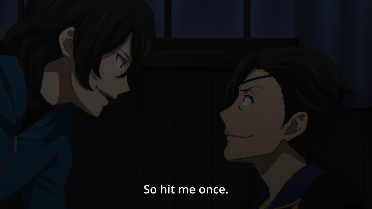 — Mitsumune’s dad tries to be selfish once more by asking the kid to come home and pretend to be his dead brother again. C’mon, man… do you want him to run away again? The old man then admits he had placed all of the burden on his remaining son, so I don’t even know why he bothered to ask in the first place.