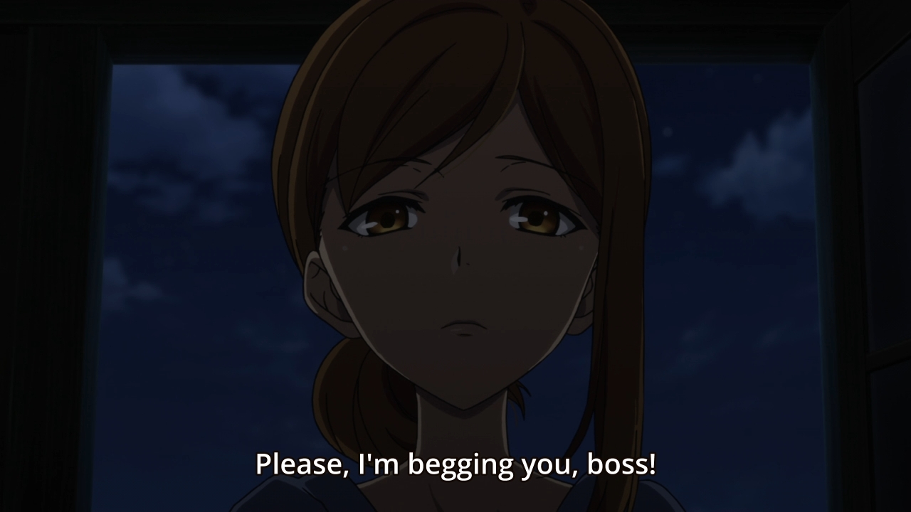 — Back to the idiots at the village, people are starting to feel tired. And when they feel tired, they also start to lose their oh-so-quirky personality. For example, Pii-tan is no longer lovey-dovey anymore. In fact, she seems to find her lover quite repugnant now. As for the tour guide, he’s done giving a fuck. In fact, a lot of them have stopped giving a fuck. Psst, me too. Unfortunately, the lack of fucks being given pisses Hiragi off. Oh no.