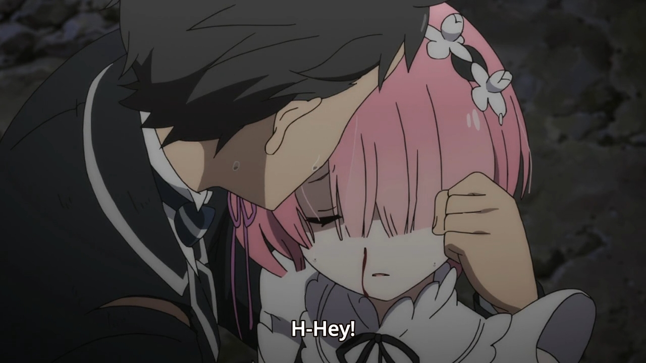 — But again, the mission is to have our cute maid smile again or some dumb anime bullshit, so Subaru chucks Ram right at her sister.