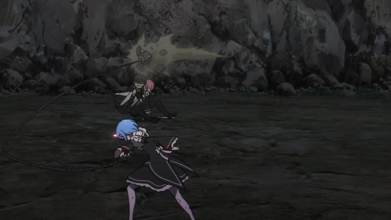 — The demonic Rem has lost control of her senses, so she lashes out at Subaru and her sister. Welp. To top things off, the evil pupper is up to no good as well. Naturally, this is where Subaru spews some chauvinistic bullshit to give him the proper nipponjin motivation to act.