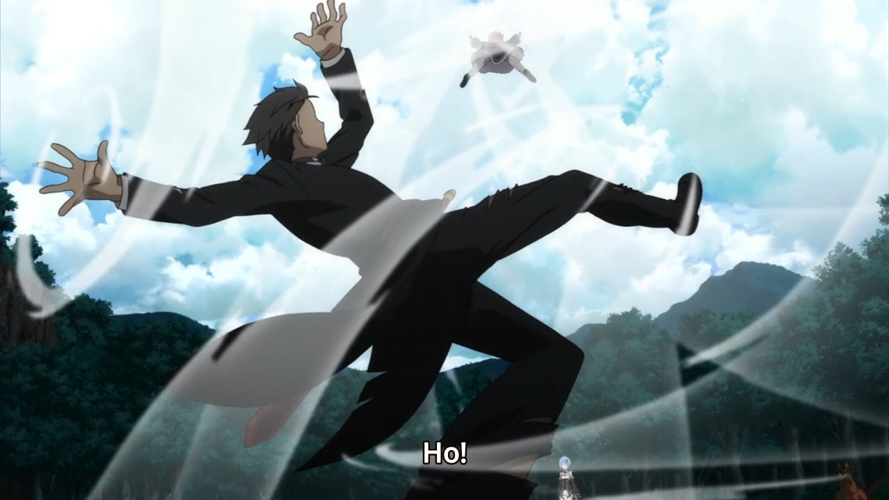 Oh, for fuck’s sake. Yep, episode’s over, folks. Come back next week for yet another episode full of delicious conversations between Subaru and his cute girls. Clearly, this epic struggle against dogs requires months and months of episodes. Anyway, I’m expecting our hero to use the blinding magic Puck had taught him in order to prevail next week. At the same time, I wouldn’t be surprised if this arc still isn’t finished by then.