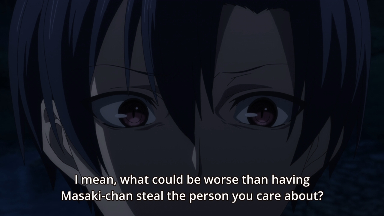 As for Mayoiga, it’s just like, “Aw man, Mitsumune betrayed you for some girl he just met. Ugh, what a jerk! You must feel real bad, huh?” “No, stop! Don’t say her name! Ahhhhh!” Jesus Christ. So yeah, of course I’m fucking bored when I have to endure these scenes. And no, I’m not arguing at all that Mayoiga should try and hold itself up to a show like Hannibal. Obviously, the latter has a much higher budget, a much larger writing team, so on and so forth. I just don’t want people to get the wrong idea when I rant about the overabundance of talking in these episodes or any anime for that matter. I know conversations between two people aren’t inherently boring. Some of my favorite movies don’t have any action in them. Mayoiga’s main problem isn’t that it lacks action or that the characters talk too much. The show’s biggest problem is simply that the writing sucks, so the dialogue sucks.