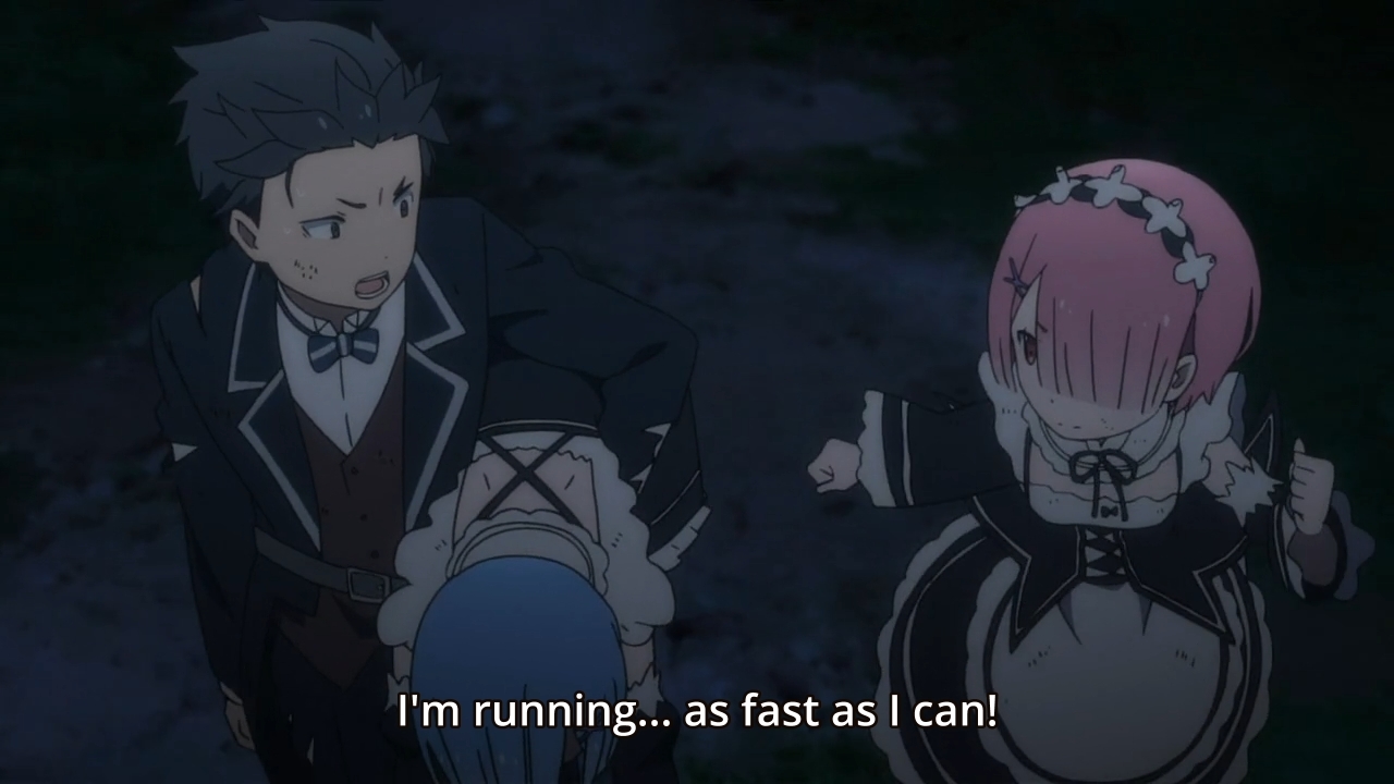— Anyways, we’re right back to square one… Subaru uses himself as a decoy to allow the twins to get away. I save you, you save me, we all take turns saving each other.
