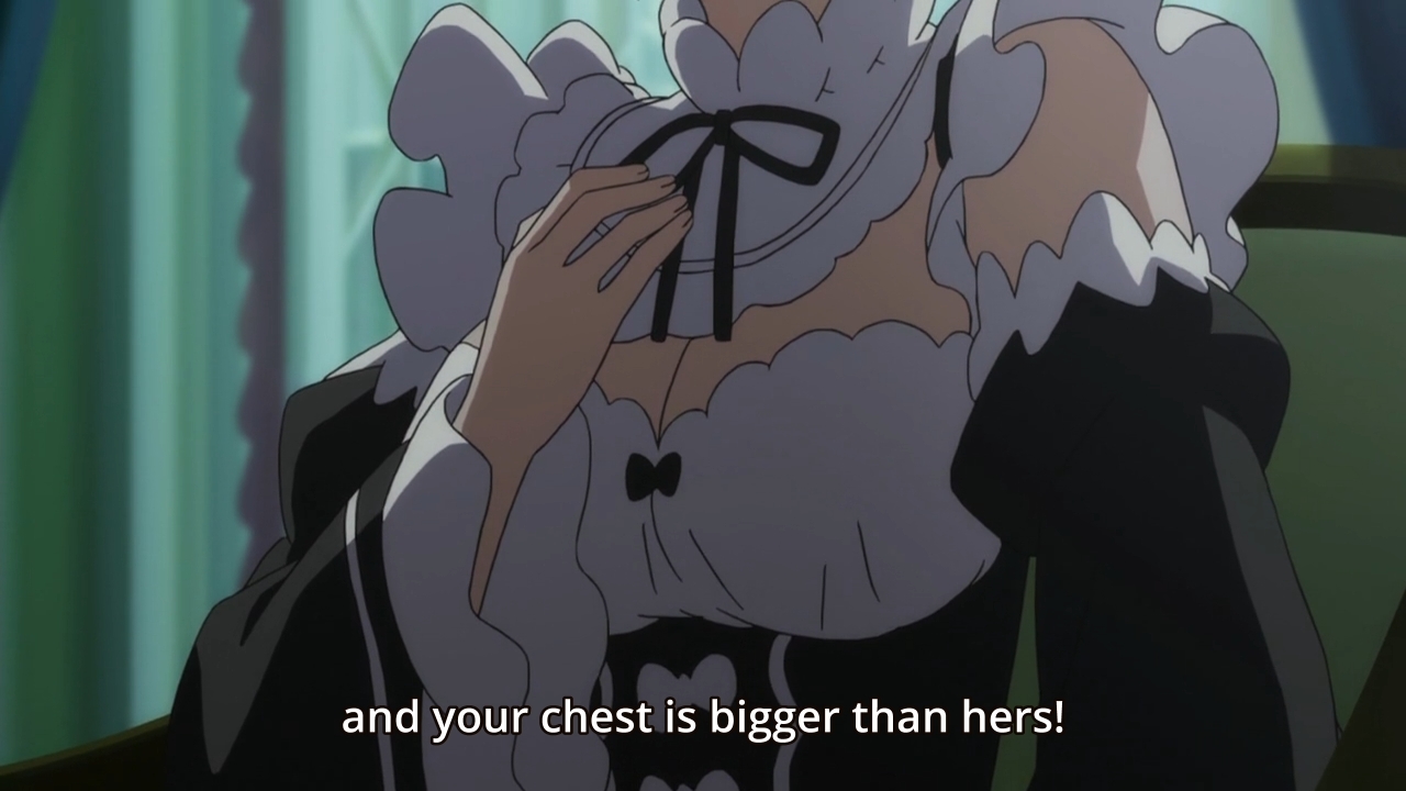— Anyways, the girls’ origin story is nothing special. Ram was the prodigy, Rem wasn’t. The latter struggled with her inferiority (and her ugly face), but eventually grows to accept it, because her sister always supports her. How sweet. It seemed rather patronizing to me, though. “Mom, Dad, don’t you think these steamed potato taste really great? The salt is really, really on point!!” Way to go, Rem.  You really know how to salt and steam a fucking potato.