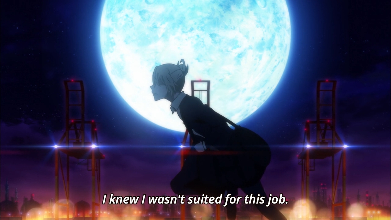 I don’t know much about Akutagawa. He used to come from the slums or something, and Dazai was once his mentor. The guy also seems to have some sort of persisting illness. Other than that, however, the guy is an enigma to me. I can’t relate to him or his personal motivations at all. So imagine, then, what I must think of Higuchi. She’s a goddamn black box compared to Akutagawa. She’s hardly gotten any screentime, and when she does get the spotlight, it’s only in relation to Akutagawa. Her character doesn’t and probably can’t exist on its own. I’m not even sure if she has much of a personality. So it’s completely mystifying to me when this young, beautiful-looking girl who’s clearly talented nevertheless throws herself in harm’s way just to save Akutagawa of all people. Why does she bother? What is she getting out of that relationship? Well, that’s the anime’s job, isn’t it? It’s supposed to tell me why I should care for her and her slavish devotion to the guy. And yet, because this story only takes up half of the episode, Higuchi and her motivations remain a mystery to me. Shouldn’t her story get its own episode? I guess not. Oh well.