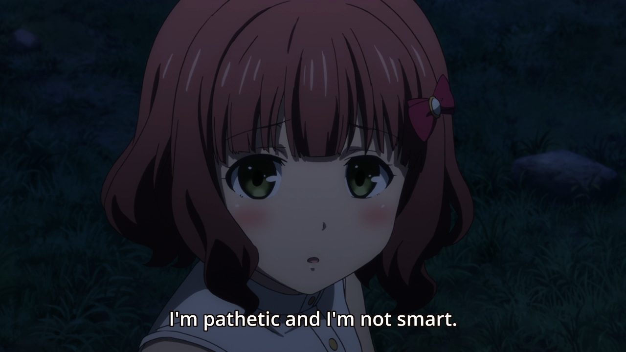 — Back to Mitsumune and Masaki, we get more flashbacks about the girl and her imaginary friend. She just wants someone to tell her exactly what she wants to hear. Too bad Reiji’s imaginary. But like I’ve said, it’s okay now, because Mitsumune can totally fulfill that role. He’s spent all series white-knighting her, so you know he’s not blowing smoke up her ass. He’ll definitely tell her what she wants to hear. Cue blushing.
