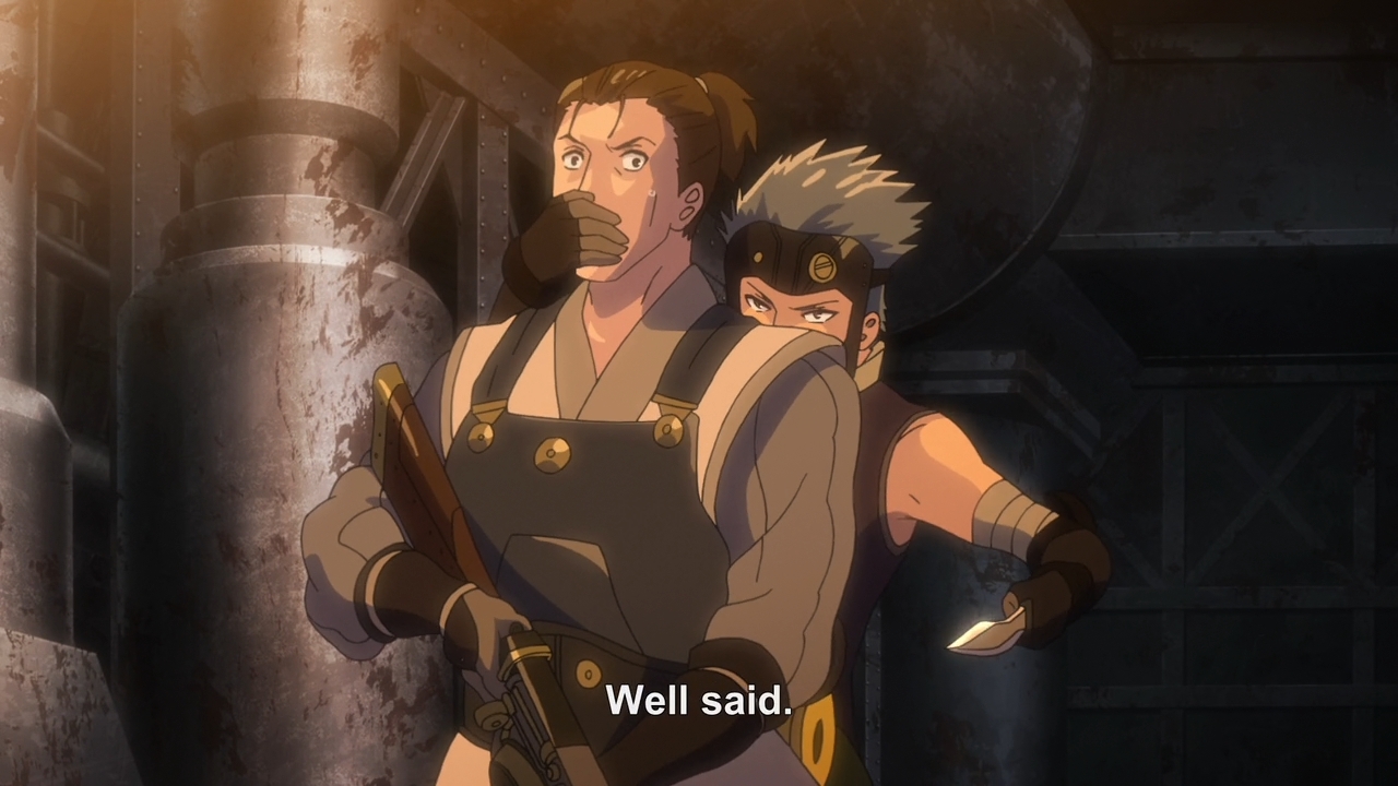 Kabaneri has this particular mixture of shallow characters, boilerplate plot, and bombastic directing that leaves nothing to the imagination, and nothing to talk about. It’s not interested in building a world, examining characters, or setting up drama beyond the minimum required for the next set piece. Nobody talks except to advance the plot, and when they do you wish they wouldn’t. It’s so perfunctory a series as to stand out: all there is to it is flashy action (or occasionally, terrible still frame shots of action) and good pacing.