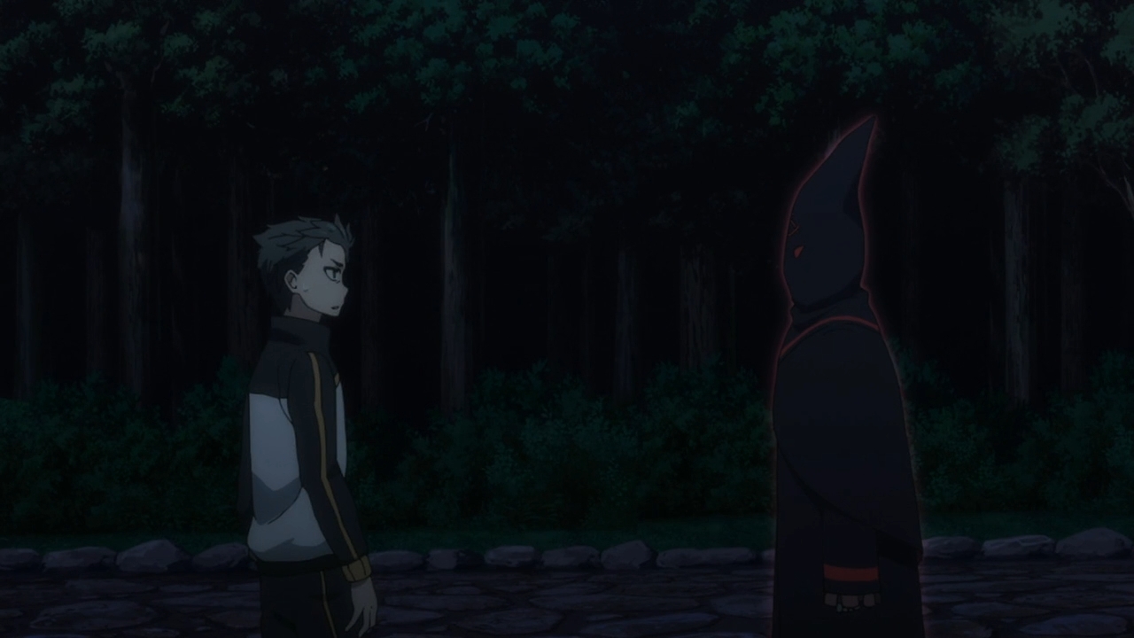 Midway through this week’s episode, Subaru gets some bad news. Through some sort of special demon twin brain link, Rem senses that Ram is in trouble… I think. Whatever, the point is that Emilia is likely in trouble, and of course, Subaru has to disobey her wishes once more and hurry back to the mansion. And okay, he cares about her, because she’s nice to him, and she’s profoundly touched him through her actions in timelines that have been overwritten, yadda yadda yadda. But like I’m saying, that’s all from his perspective. From my perspective, it’s hard for me to care one way or another about the girl. So even though Subaru is desperate to return to the mansion, that same sense of urgency doesn’t translate. I’m not feeling it. I didn’t really care either when those two had an argument. I never saw them as a couple anyway. Couples should bond on multiple levels. His inability to be serious with her as much as he needs to raises all kinds of red flags.