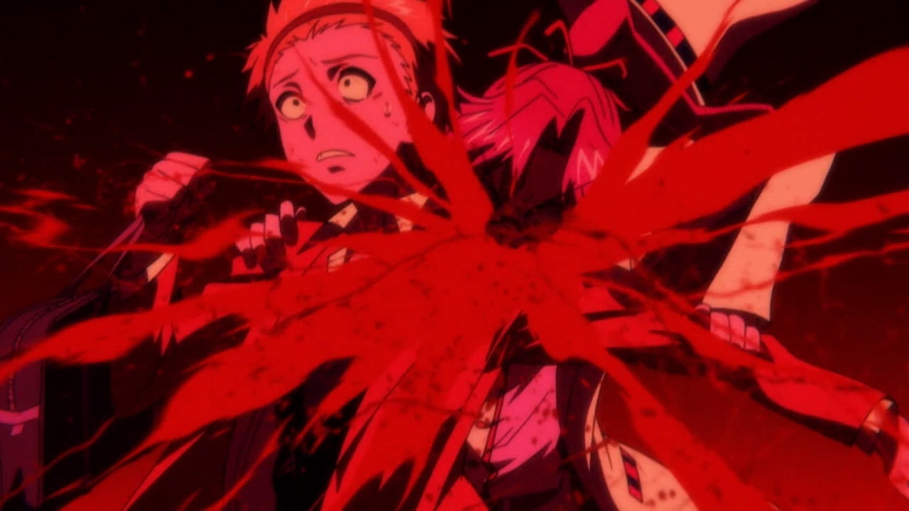 For now, the majority of the plot remains a mystery despite the first episode’s doubled runtime. At night, Tennouji keeps getting bitten at night by some silver-haired ghost. During the day, we are slowly introduced to the show’s Key-esque heroines. What makes them Key-esque? Oh, just the fact that they’re dumb as bricks. Meanwhile, the main character tries to be clever and sometimes even meta in his commentary, but it doesn’t really work. Think Kanon or Clannad, but without KyoAni’s direction. I don’t even like KyoAni, but they have a knack for this sort of thing. It’s not that Yuichi had better lines or anything, but his voice actor did have superior delivery. Anyways, Tennouji spends the latter half of the episode trying to enlist the help of the infamous school witch, because she might be able to help him with his bitey ghost problems. But when he sneaks into the school at night, he finds himself being chased by said ghost. In his attempt to get away, he slips into… another dimension? There, he meets two pixie-like creatures, and together, they stumble upon some large, scary beast that threatens to kill them all. Thankfully, bitey ghost makes her reappearance and whips the beast to death with her ribbons. Oh my God, I’m so bored.