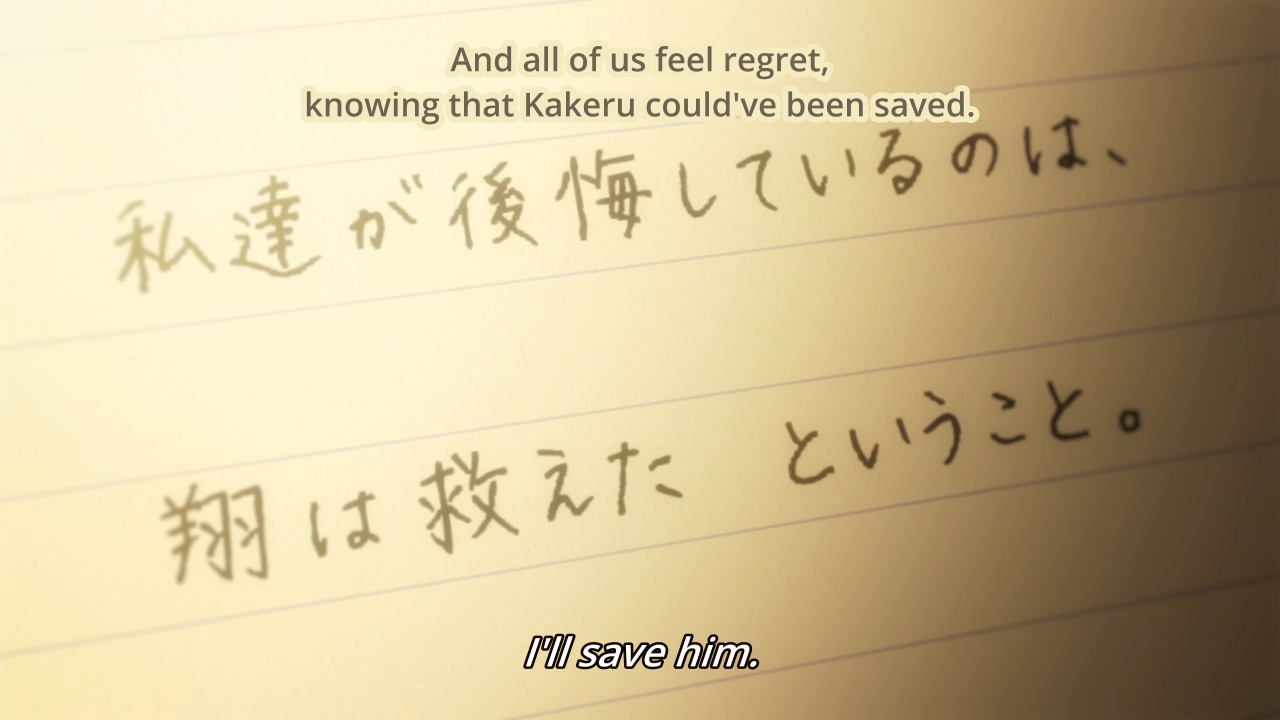 I haven’t watched this episode yet but the thing that bugs me is that if future Naho wants things fixed why is she so round about in how she’s writing. A simple dot point list of these are the things that went wrong, change them, would be so much more helpful.
