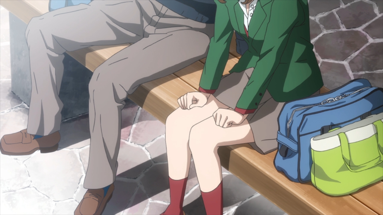 Tomorrow comes, and Naho finds herself short on courage. Lunchtime rolls around, but she closes her eyes in fear, and her lips tremble at the thought of giving Kakeru the bento box. By the time she steels her nerves, the guy had already left the room. Once lunch is over, the girl feels as though she’s just missed her moment. It’s too late to give him the bento box now, she probably thinks. It just drives me mad seeing someone so shy and passive. I can relate, and at the same time, I can’t relate. I mean, it’s been so long since I was a teenager. It’s been so long since I’ve actually had such an innocent crush on anyone. Although I’ve been in Naho position before, memories of those anxious feelings have long since faded. My heart wants me to empathize with the girl, and truly, if she were just shy, I probably would feel that way. But there’s a moment later in the episode that really epitomizes why girls like Naho drive me crazy. When Kakeru notices that her bag is larger than usual, he offers to carry it for her. Afraid that he might discover the bento box, she jerks away from him in a fashion that makes it seem as though he’s offended her somehow. Oh my god, it is just a bento box!