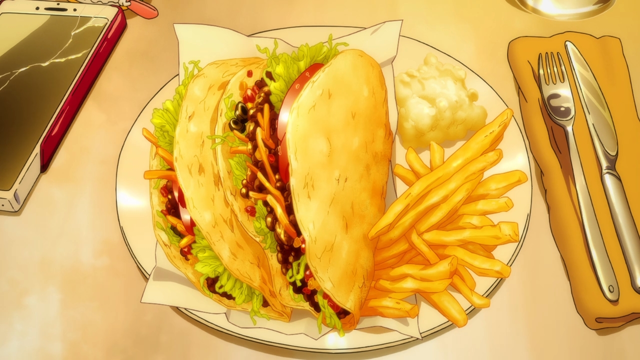 — Meanwhile, Sword is feasting on a hunk of meat that couldn’t have come from any cow. Along with that mountain of french fries and tomato-flavored sugar sauce, I’m sure he’ll have a find time shitting it all out later.