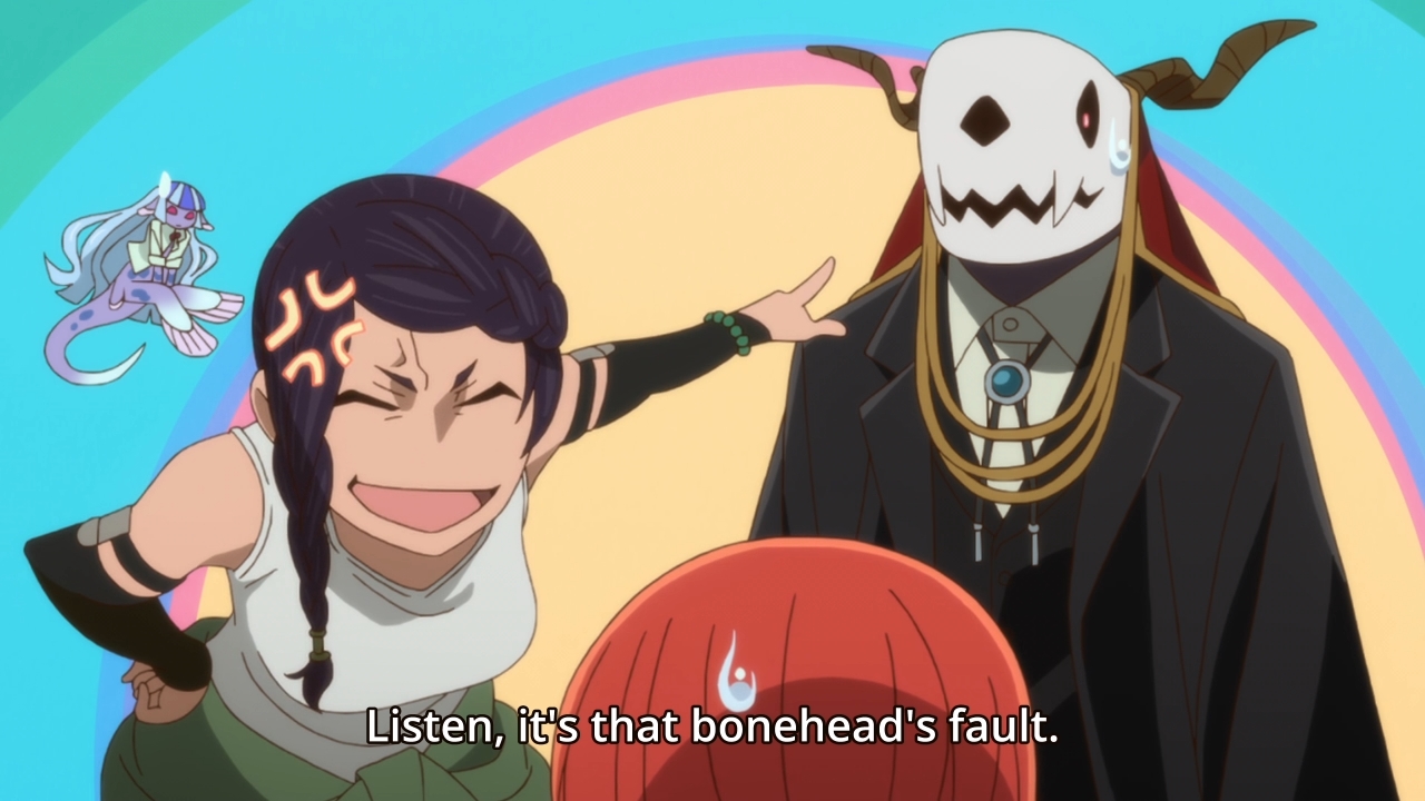 I like science fiction, because it often takes a look at all the problems that humanity faces in the present day, and tries to imagine how those problems might be addressed in the future. Or instead, it’ll just imagine what bigger problems we’ll face as a result of technology. Stories involving magic often don’t engage me in the same way. They almost always feel as though they should only be taken at face-value. Almost always are the operative words here. They’re not all boring to me; there are some interesting stories that involve magic. And to be fair — and I will give credit where credit’s due — magic has the potential here to unlock Chise’s memories. In this week’s episode, we get a glimpse of her mother through magic. This is, sadly, the only interesting moment of the entire episode, but nevertheless, it hints at something greater to the power of magic than just, well, silly magical shenanigans. For Chise, anyway, magic has the potential to be therapeutic, and this would be a fascinating angle for the story to explore to the fullest.