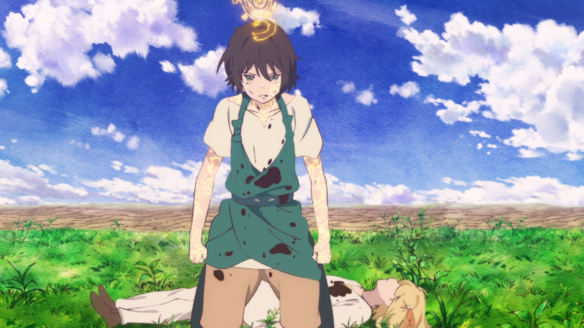 I haven’t even gotten to Chakuro, but he isn’t spared either. No, he doesn’t die. But like the rest of the children, he loses his innocence. At first, he tries to escape with Sami, but the girl is dead. The childhood friend doesn’t win here. In fact, she barely last two episodes. And like with Ouni, the soldiers could’ve easily started attacking Chakuro. It’s not easy for a kid to run away with a corpse in his arms. But they don’t. If you want to be charitable to the story, you can again assume that the bad guys are toying with their victims the same way a cat would toy with a mouse. Maybe this is why they’re being really slow and inefficient with executing Chakuro even though they had no issues gunning Sami down immediately. That’s one interpretation. Or you can see this as yet another manipulative scene wherein Chakuro’s despair is ridiculously drawn out in order to justifiably push the kid towards the edge.