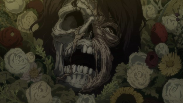 Did Marie become a Horror before she killed Ripley or after? Did she become a Horror because she was imprisoned, or did she become one because she couldn’t move on even after exacting her revenge (the torture equipment in the basement was certainly put to good use)? Maybe Marie thinks she can steal those flowers’ beauty and restore her youth. In any case, Sword quickly shows up to save the day. The battle against Marie is not particularly remarkable as victory is assured, and no one is ever in any real danger (despite Sophie’s close call). In the end, Sword cleaves the Horror in two and rides off with the girl in tow. But what about the house filled with torture equipment and Ripley’s head? What about the big mess from the fallen church bell and Zaruba crashing into a small, nearby building? Eh, I’m sure Luke will show up at some point to clean it all up. Marie suffered a painful life, and people will hardly know she ever existed.