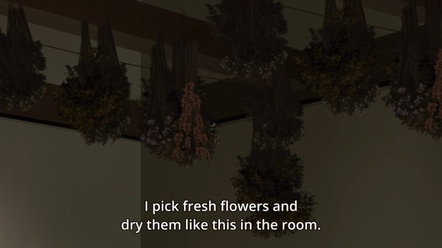 It’s interesting how victims of trauma will prevent themselves from healing by reliving the horrific acts that they used to endure. At first glance, there’s nothing morbid about Marie’s hobby. It’s perfectly ordinary: she plants and grows flowers, then when they are at full bloom — when they are at their most beautiful — she plucks them from the ground and bundles them, hanging them upside down to dry in her home. In doing so, Marie preserves the flowers’ beauty for as long as she can. But knowing her past, we now see how her hobby disturbingly resembles her brother’s abuse. Rather than letting Marie enjoy her youth and age gracefully, he cut her life short, then “hung her to dry.” He preserves her beauty for himself to enjoy and enjoy alone. Even now, after he is long dead, Marie forces herself to suffer this abuse again and again through her hobby.