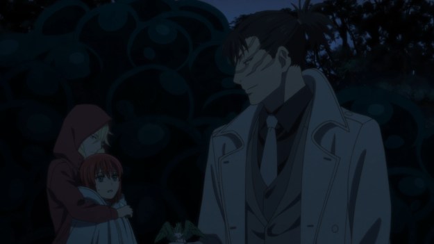 But enough about that. Chise’s attempt to cleanse the corrupted soul is rudely interrupted by Renfred, the sorcerer I had previously mentioned. He also reveals to her that, as a Sleigh Beggy, she will die soon. He quickly accuses Elias of not actually caring for Chise. He reasons that Chise’s nothing more than an experiment to the mage — a curious creature with remarkable powers. The episode comes to an end here, but for a girl with practically no self-esteem, I’m sure she’ll be rocked by these revelations. Still, this week’s episode is markedly better than the first three. It’s still not an anime I would ever watch if not for Moe Sucks, but at least we finally have an actual conflict to follow.