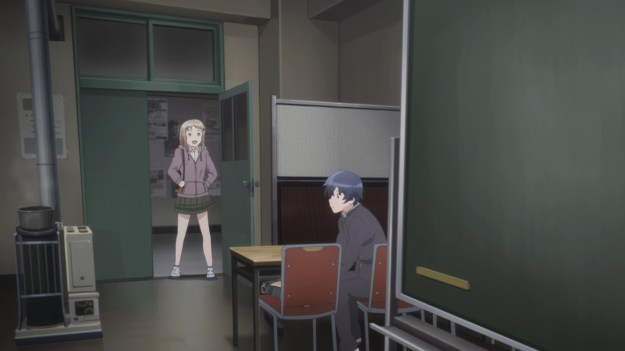 Before we get to Mio and Eita, I would like to briefly reiterate that Ena is the only main character who currently possesses a clear and straightforward goal: she needs to save her club. She knows exactly what she wants, and she’s pursuing it to humorous ends. We see her rampage through the school, stalking Eita like prey. But as she continues to enmesh herself in their affairs, I’m sure her situation will likely evolve in melodramatic directions. Even though I’ve been singing Ena’s praises pretty hard lately, the truth of the matter is that she’s still just a side character. She hasn’t gotten anywhere near the same amount of emotional development as the other characters. Her time will come, but there’s honestly little to talk about right now. She barely even has a role to play in this week’s episode.