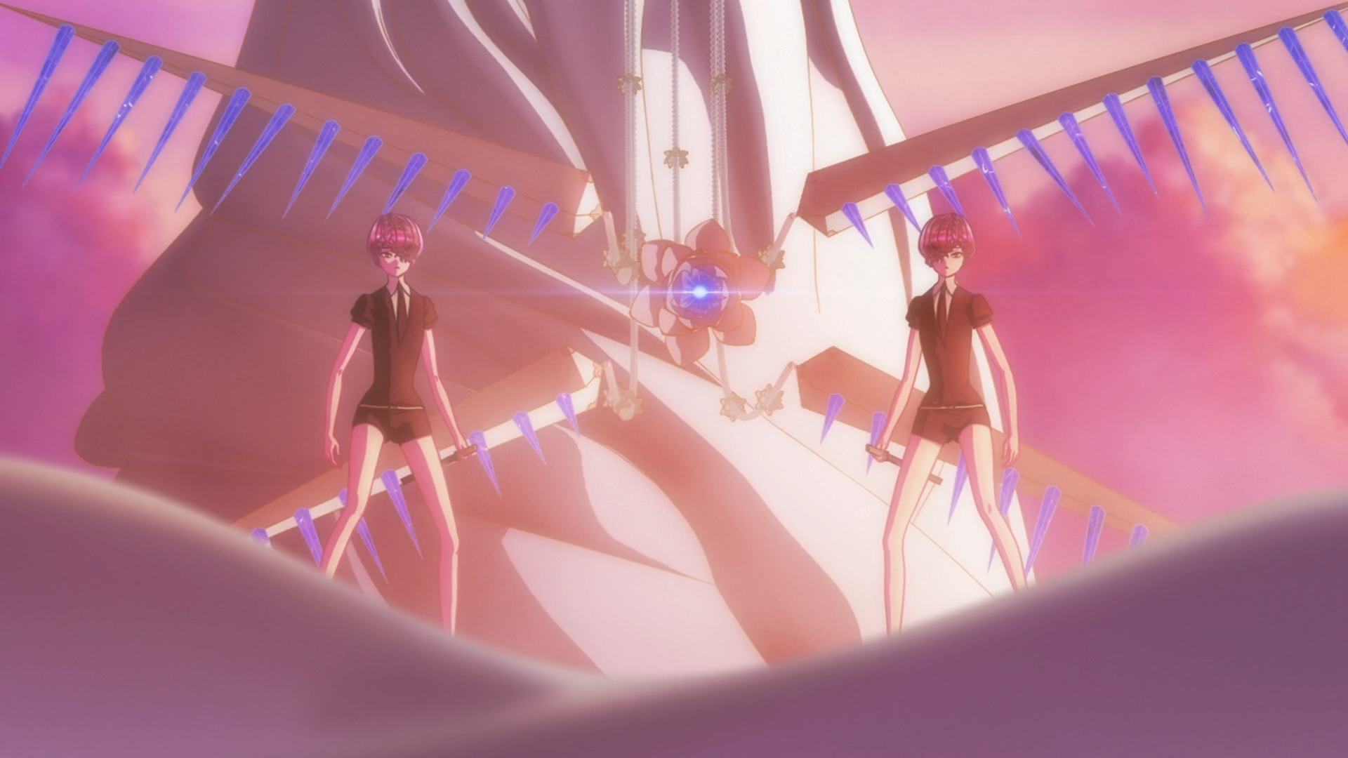Kongo wants to know why Phos so desperately wants to fight despite having no inherent combat abilities whatsoever. The latter offers the following answer: “I want to help because you have a special place in my heart, Sensei.” Uh, why? Shh. It’s one of those crucial character motivations that won’t be explained for a long time. Maybe never. All Kongo can do is stare back with astonishment. No matter. After begging Kongo for an opportunity to do more than simply collecting information, Phos is assigned to the twin Amethysts. Twins are always slightly creepy, aren’t they? And the twin Amethysts are no different. Not only do they speak in unison, they also speak very slowly. It’s not readily apparent why. As the trio do their rounds, however, Phos is often found on the ground. A little hard work is enough to leave the gem both physically and mentally exhausted. Has Phos actually learned anything in their short time together?