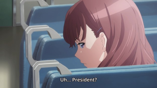 Ena’s the direct opposite of Mio; she’s always able to vocalize what’s important to her. Well, almost always. Early in this week’s episode, she wants to ask Eita out, but she can’t find the right words. If she’s too direct about it, he would likely decline her invitation. If she’s too formal, he won’t get the right idea. In the end, she tries to split the difference but still agonizes over the tone of her words. Luckily, Puta (what an unfortunate name for a cat) is the perfect wingman.