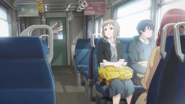 On the day of the date, Eita bumps into Mio on her way to cram school. She frowns when she sees him out and about; she might already suspect at this point that he’s on a date with Ena. Besides Haruto, who else would he hang out with? Eita suggests that it’d be easier for her to take a bus, but it almost seems as though she’s following him onto the train just to confirm her suspicions. As they wait at the station, she, too, questions him about Ena. He’s frustrated that everyone keeps bringing the girl up but remains clueless about the overall situation. Hell, he only just now realizes that Mio had seen them that night when he gave Ena permission to use his photo. But does he try to clear up any misconceptions Mio might have? That would be too easy, huh?