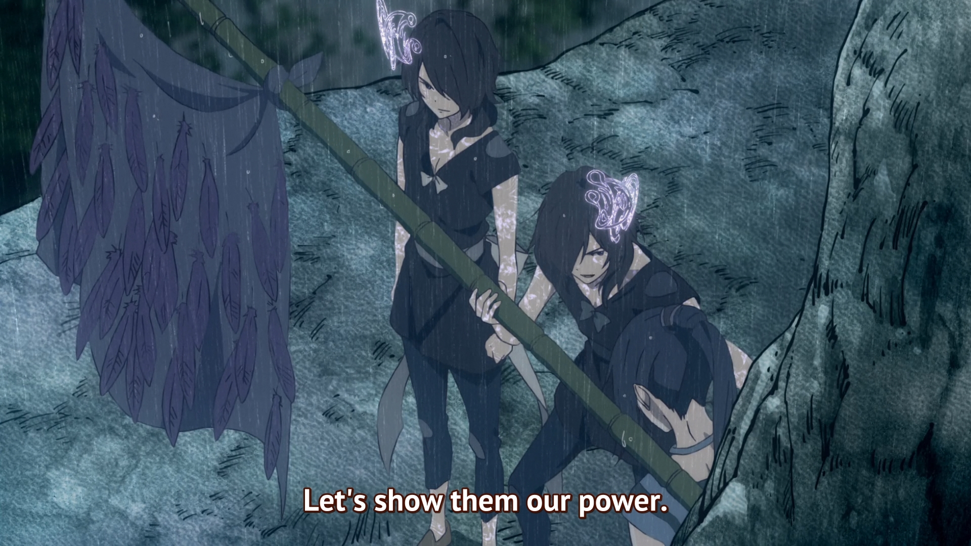 At this point, Lykos drops a bombshell: instead of eating emotions like other nous, Falaina eats your life. This is why these kids live such short lives. The Empire, by comparison, suffers from no such affliction. Lykos had remarked in an earlier episode that Falaina’s Marked had stronger thymia. Orka’s trial at the start of this episode also seems to imply that this exile was nothing more than an experiment. Maybe the goal all along was to try and coax forth a daimon, and this can only be done with a bizarre nous that eats lives instead of emotions. Who knows? I’m just speculating. Needless to say, Chakuro happens to be within earshot of Lykos’s revelation, and he’s devastated. This precious home that he’s always loved is nothing more than a death sentence. Not only do the Marked have to see their loved ones’ die young, they never get the benefit of age and experience to help blunt that pain. You either give up your emotions and go to war for the Empire, or have your life cut woefully short as refugees. Children of the Whales is essentially an allegory about the effects of war on children. Whether or not it’s an effective one is… well, you can probably already guess what I think, but let’s have that discussion next week.