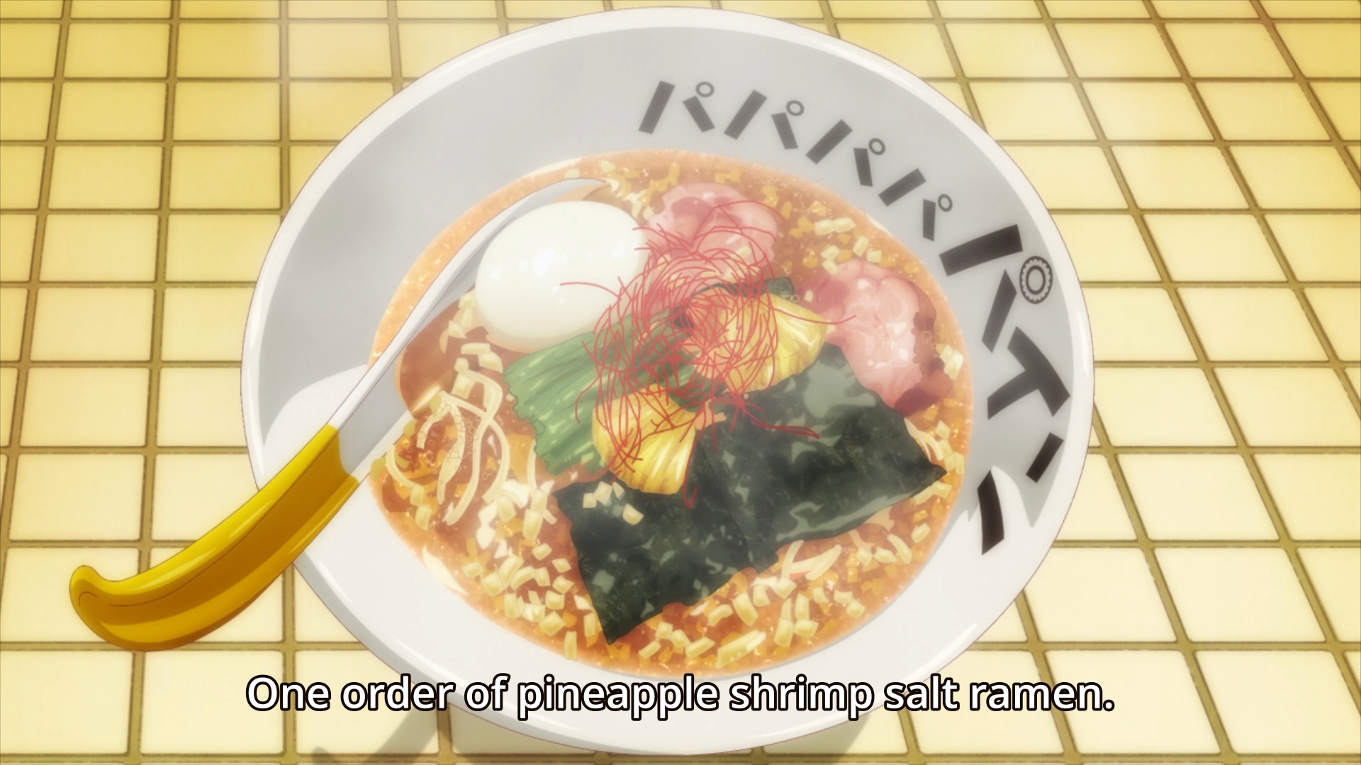 My opinion of this show hasn’t changed since last week’s episode. It’s not as informative as I had hoped it to be. I want to learn about all the different styles and preparations of ramen. Instead, what I get is a bunch of gimmicky, specialty ramen. Stuff like natto kimchi cream cheese ramen. Pineapple ramen. Ice cream ramen. I don’t doubt that these quirky ramen concoctions exist. They certainly do! But if you’re going to bring them up, then tell me what they taste like. Describe them to me. Paint me a picture and make me hungry! But instead, the show seems content to pay a bunch of voice actors to slurp and moan into the mic.