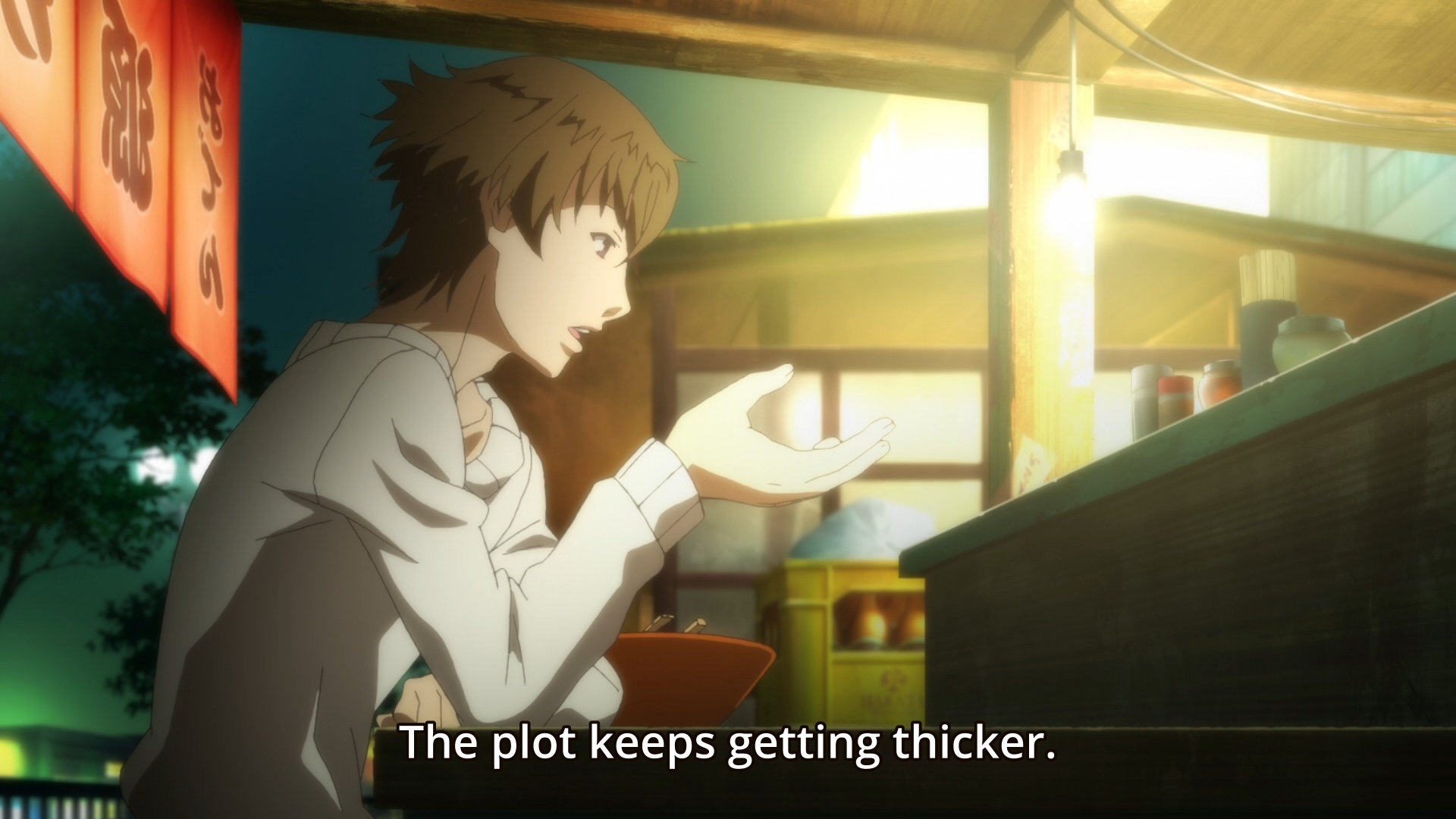 Typical of modern Japanese mysteries, this show has a ton of characters and moving parts but little in way of heart. Everything just feels so cold and clinical. No one’s likeable, but there’s no one that I would love to hate either. Usually, someone important is supposed to die, and this gets the ball rolling. Let’s say an old flame needs your help. Someone has murdered her husband in cold blood, and even though you two haven’t spoken in years, you just can’t say no to her. Before you know it, you’ve uncovered a massive conspiracy! Sorry, for some reason, I have Policenauts on the mind. My point is that this opening episode does a poor job of getting me caught up in the Hakata Tonkotsu Ramen‘s tangled web of hitmen, hitmen, and more hitmen.