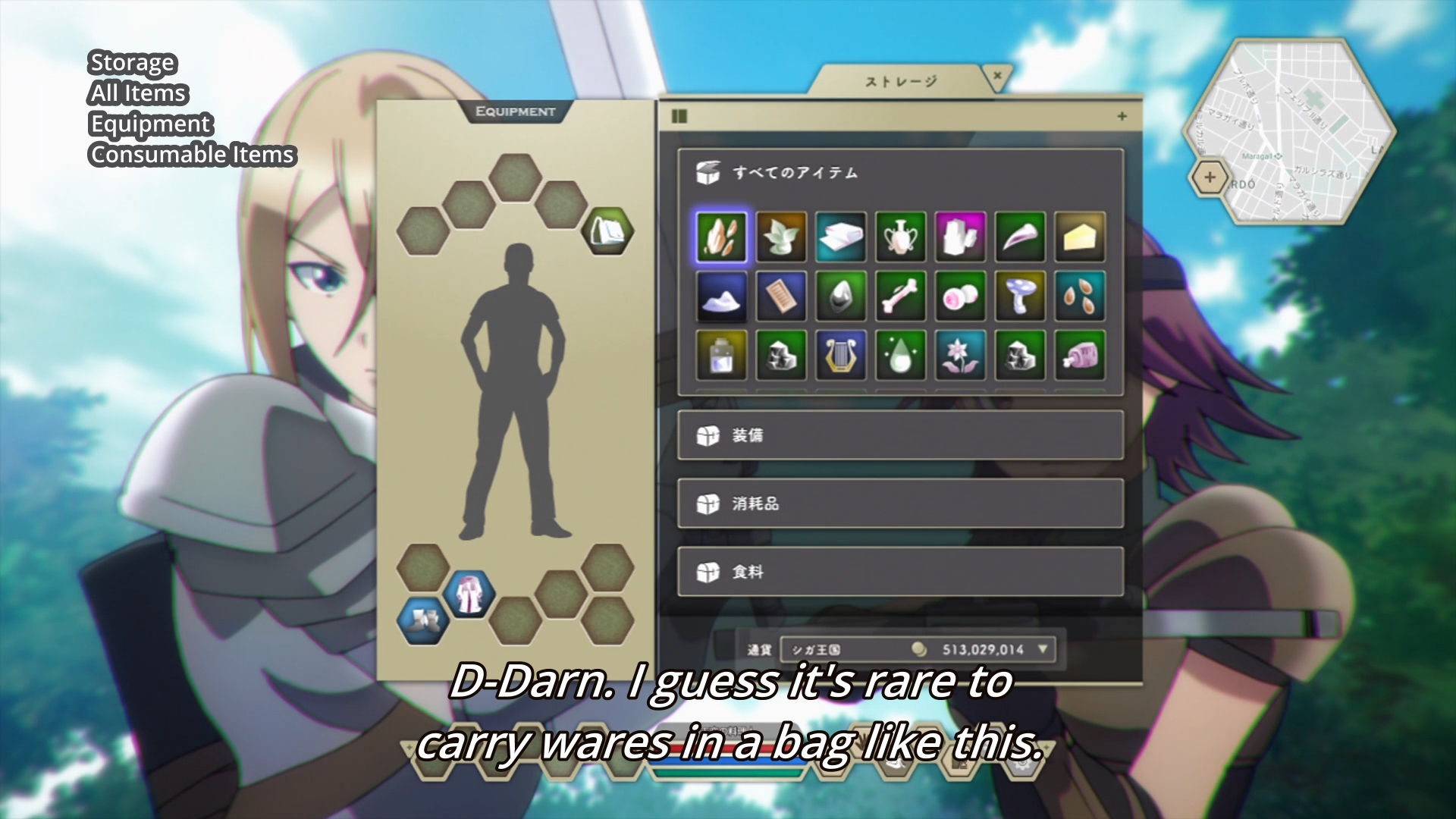 — On his way to the inn, the guy bumps into yet another girl. This one even comes with a large chest. Christ, that makes it… what? Four girls that he’s interacted with and only one guy? He might have come from the bargain bin, but that doesn’t mean his harem will be small!