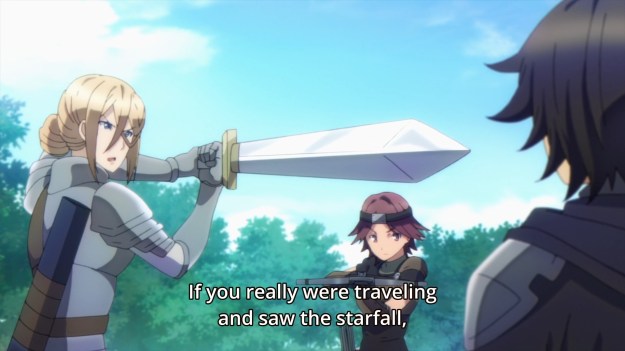 — One of Death March’s gimmicks is that it certainly feels more video game-like than other “stuck in an MMO” anime adaptations. NPCs seem to patiently wait as Bargain Bin Kirito stumbles through the clunky UI in search of a response. While this is somewhat novel for now, it’s still a gimmick that will wear thin after a couple episodes.