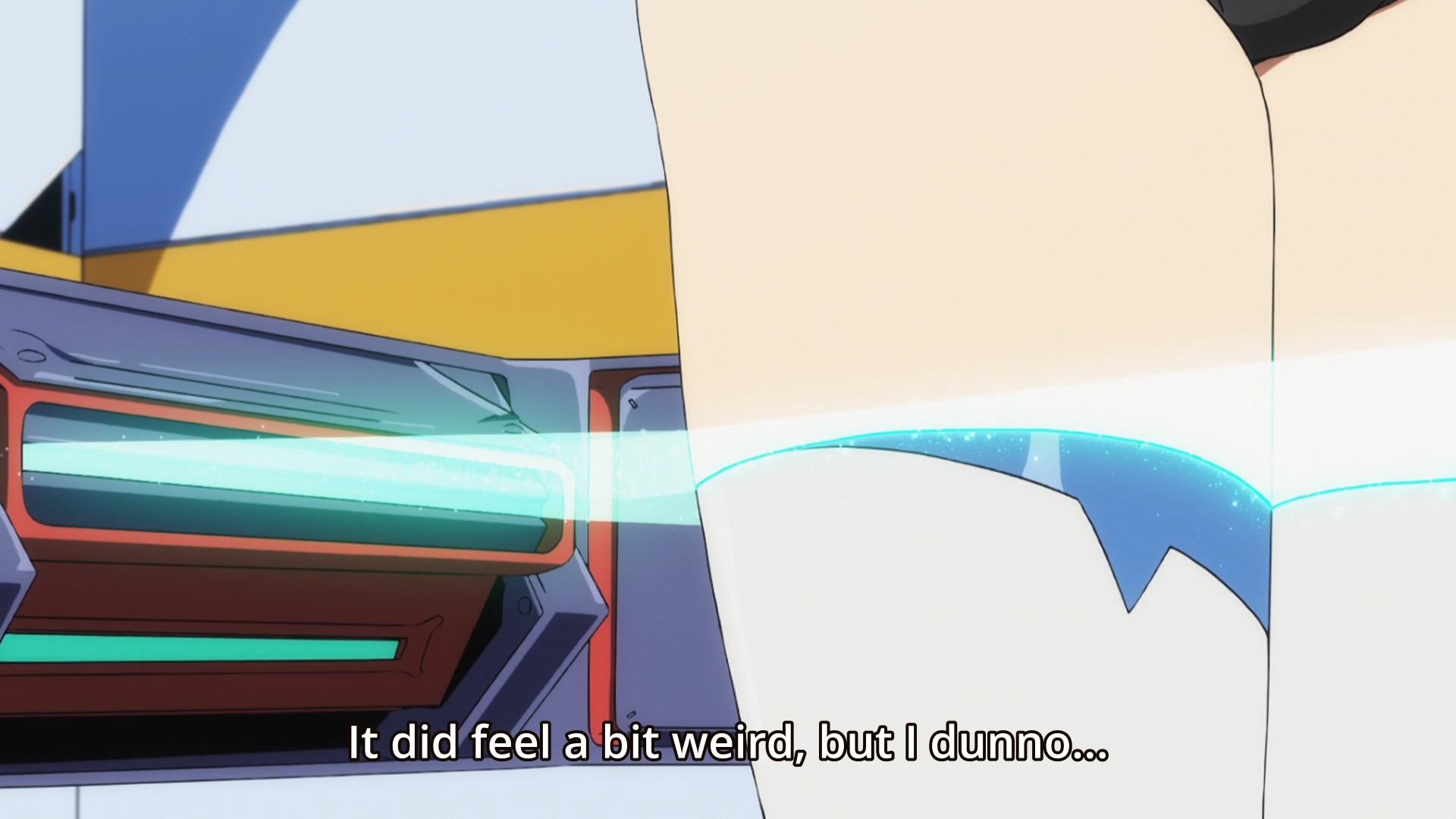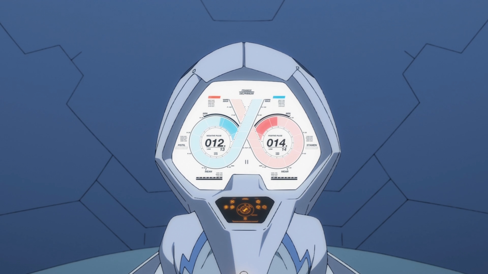And you certainly can’t do it well if you’re easily embarrassed. In this week’s episode, we finally get to see what it looks like on the inside of a FranXX. After putting on an incredibly skin-tight suit that apparently needs to be “painted” onto your body, the pistil then dons a large helmet that has a screen on the back. She then assumes a position on all fours. A device around her waist activates and dual controls jut out. The stamen is seated upright behind the pistil and grabs hold of the dual controls. The two partners then proceed to connect. The pistil’s buttocks light up. Her spine lights up. The monitor on the back of her head lights up. According to their instructor, “If two partners are even slightly out of sync, their para-capacity will fluctuate wildly. The key is to trust your partners and accept them wholeheartedly.” So… it’s essentially doggystyle except without all the good stuff.