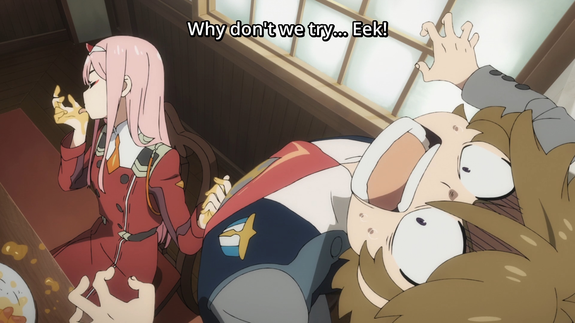 — Zero-Two: “I’ll let you have him this time. Go for it.” It’s like she knows Ichigo and Hiro can’t do it, so she has no cause for concern. She’s almost taunting the girl.