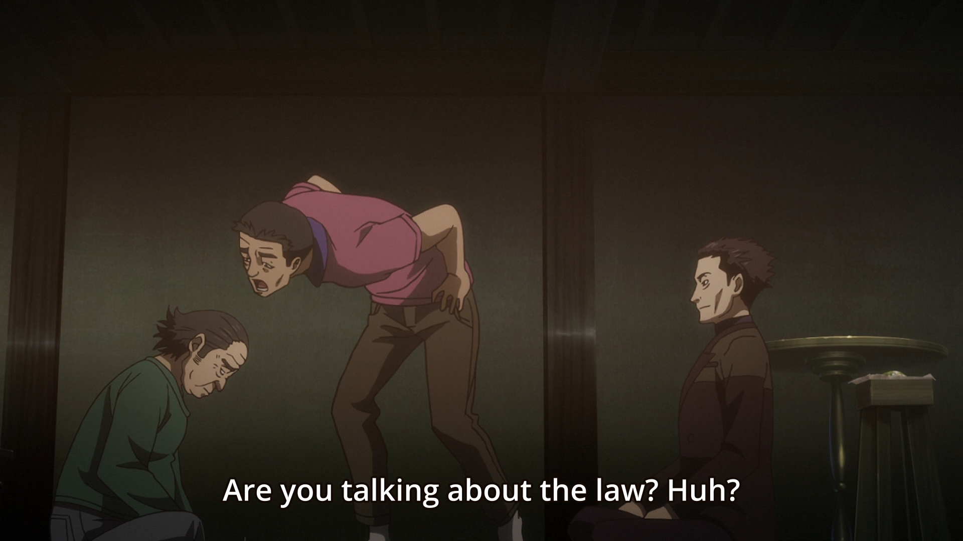 Anyways, a bunch of goons are dicking around in a convenience store. They even pull down a defenseless woman’s panties. I was hoping for The Herald to show up and crush their heads in, but nothing happens. Has it run out of energy already? Or does it only show up in cases of murder and sexual assault? Luckily, one of them spots Juri in the distance, so they don’t get to do anything further to that Stalled woman. Juri also runs into her grandpa, which sets off a chase scene. She and her grandpa think that they’ve eluded their attackers, but it turns out someone is just pretending to be Stalled. Unfortunately, the episode ends on this cliffhanger.