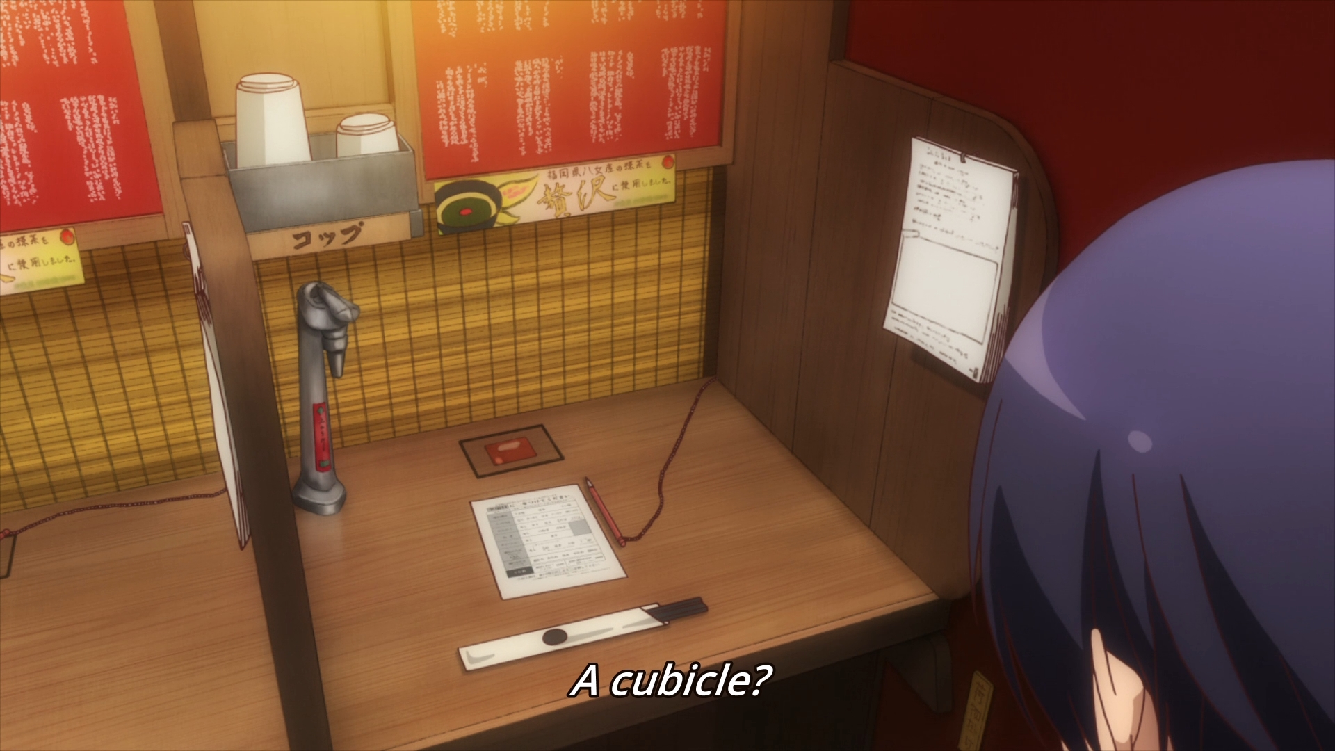 Dude, I would love a cubicle for eating ramen. Hell, I just want cubicles period. I love my privacy, but unfortunately, the open office concept has pretty much caught on like wildfire. I hate that everyone can see what I’m doing and vice versa. Yeah, that’s right, I see you watching videos on Facebook over there. Me? Oh, I’m always busy working~. But back to ramen… yeah, I know it’s not supposed to be eaten elegantly, which is exactly why I’d love a cubicle. I don’t know a single ramen shop where space isn’t a premium. You’re always practically bumping elbows with the people next to you. That’s just not my style. No one talks while they’re scarfing down ramen anyways. On the other hand, I don’t need to limit human interactions this much.