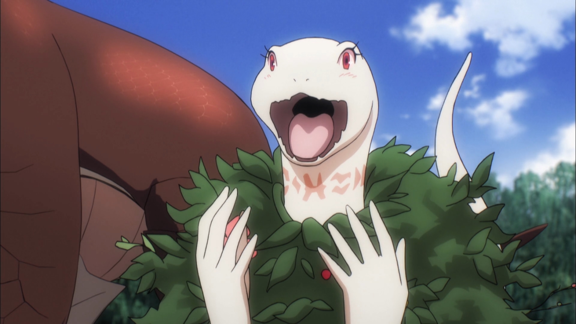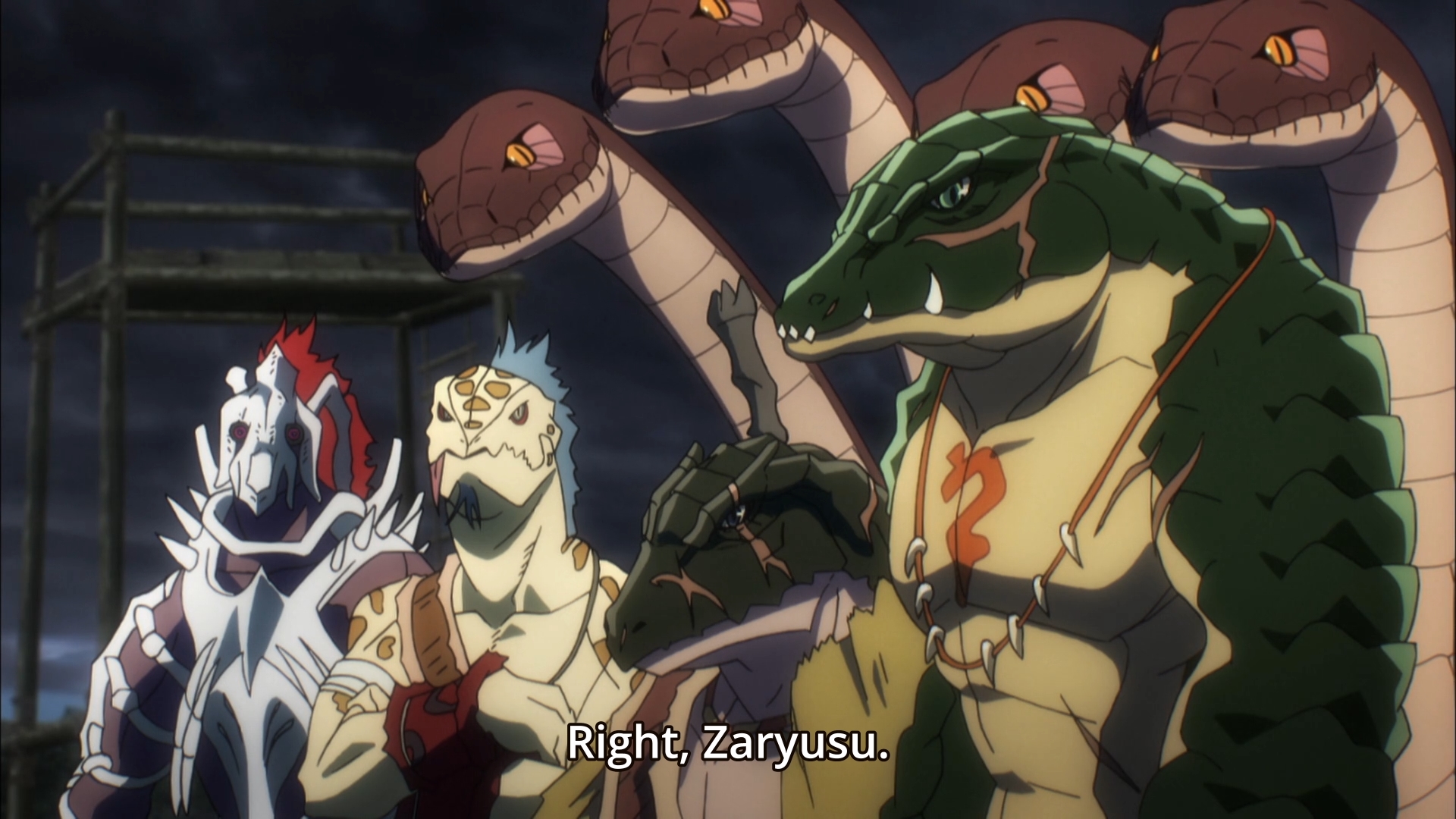 It’s funny how I don’t care at all about the lizardmen, but I feel super bad for Rororo. C’mon, hydra buddy, you better not be dead! Anyways, I appreciate the fact that Overlord II is picking the pace. When we last left off, Zaryusu and Crusch Lulu — y’know, the moe albino lizard — just reached the Dragon Tusk tribe. Before any talks of teaming up against the Undead army can take place, our lizard hero has to first best Zenberu in a trial of combat. If Zenberu dies, Zaryusu becomes the next Dragon Tusk Chieftain. Yep, just like that. An outsider who knows little about the tribe can step in and become its leader. The funny part is when Zenberu tells his tribe not to make a stink about this decision, ‘cause he doesn’t want to hear it. Well, he’d be dead, so they can make all the stink they want.