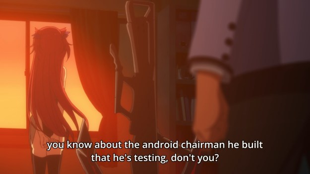 In the post-credits scene, Kouka blackmails Kengo. Apparently, using the antibody network is a big no-no. If he doesn’t want any harm to come his family’s way, then he’ll have to help her. With what? Blowing up some android who collects political opinions? She wants to be a terrorist?