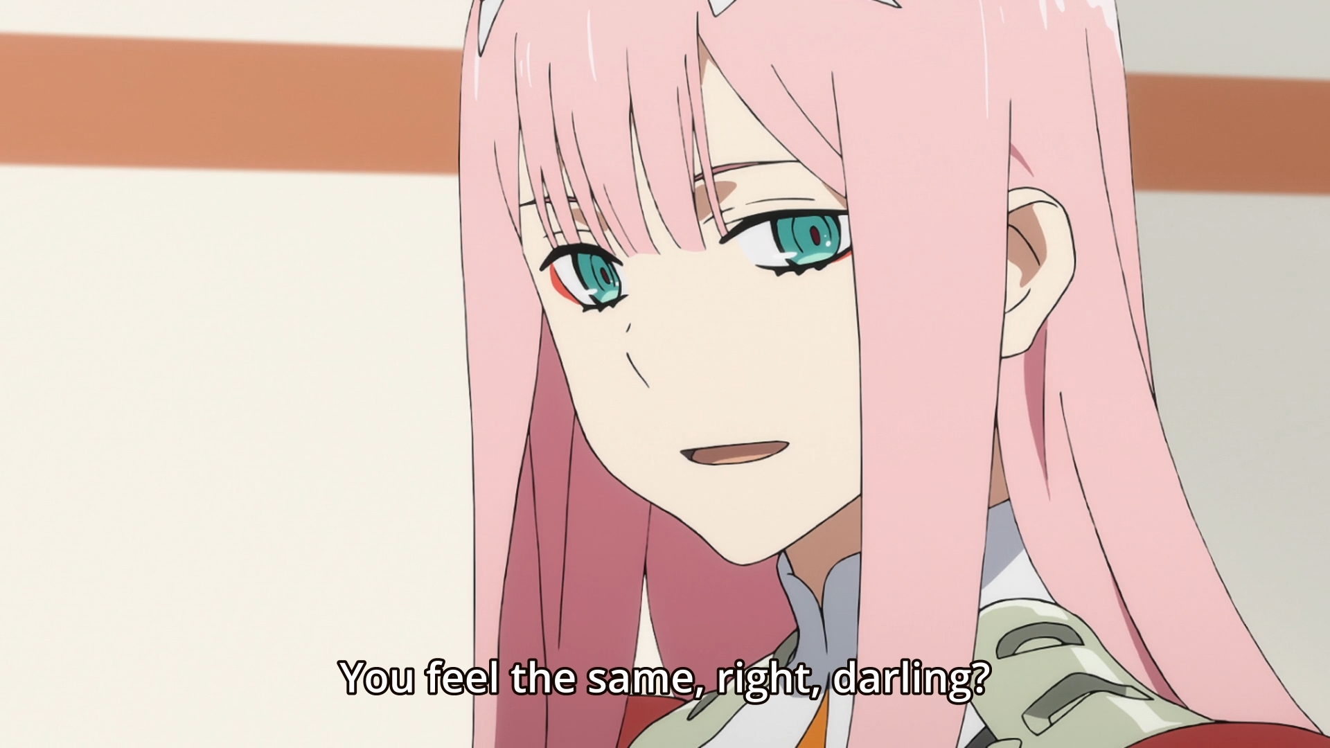 — Zero-Two: “The doctor said parasites are better off being a little pervy.” I think it’s important to consider the broader context of anime as a whole if we are to understand what this means. Anime characters blush when they hold hands. We make jokes about how lewd it is for characters to hold hands. In Darling in the FranXX, being a little pervy might just mean being less of a prude. In other words, how can you be a trusting partner if you always a stick in the mud?