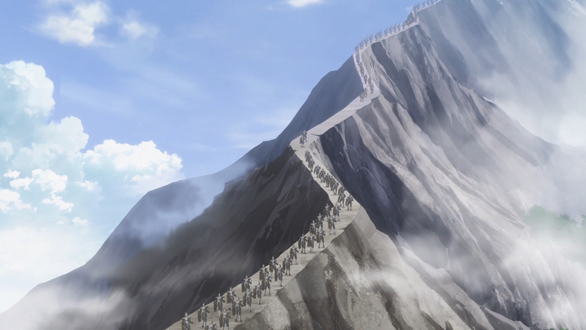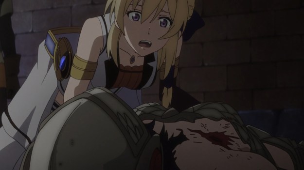 So the battle begins, and Theo’s men are easily overwhelmed. This is not remotely surprising. After all, they’re outnumbered nearly 7 to 1. Aishela suffers a critical hit and almost dies. Luckily, Priscilla is around to heal her. Basically, Aishela is too hot to die. On the other hand, Theo and Siluca receive news of Sir Neyman’s death, and I’m just like who? No, really, who is this guy? They don’t even cut to his final moments. He literally just dies offscreen. In fact, they don’t even hold a short funeral for him at the end of the episode. Nobody cares about Sir Neyman at all. I think it’s pretty bad when a named character dies, and the audience is just confused as to who that character is. Instead, we get to see the King of Savis — he’s baaaaack! — foolishly follow Sir Lassic’s men up this extremely perilous and narrow pathway. Needless to say, once the men are stuck marching in single file, Lassic turns around and starts fighting them one by one. This is obviously foolish, right? Right. And as a result, Lassic is the only leader in Theo’s army who manages to grind out a victory. But alas, he merely manages to kill the King of Savis for good. The rest of the war is still a disaster for Theo.