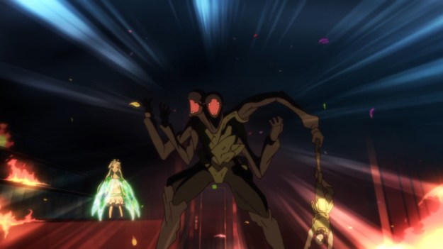 At the very end of the episode, Lacia’s “sisters” all spout stuff like how Kouka is a tool to beat human competition, Snowdrop is a tool that is entrusted with progress, blah blah blah. By this point, I’m completely exasperated thanks to the combination of my long day plus my frustration with the show’s unrealized potential.