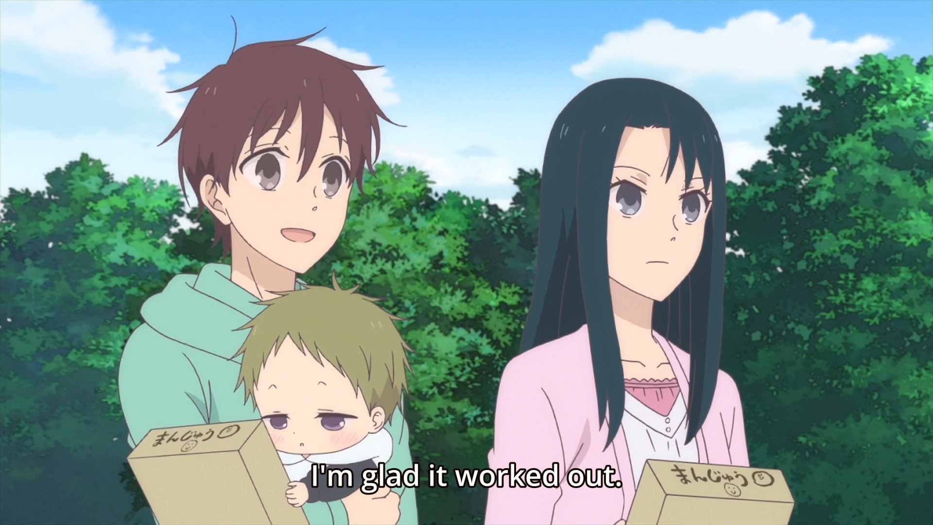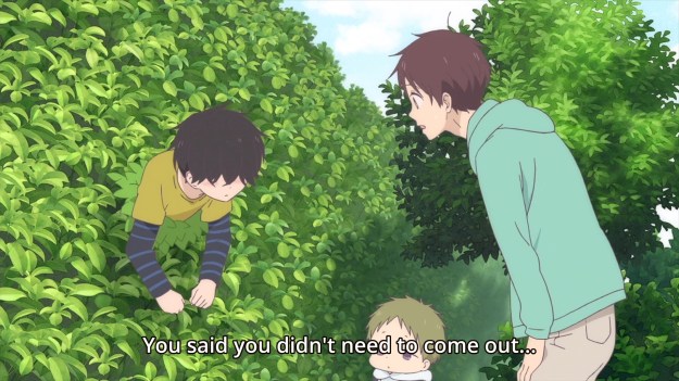 Nope. He sends Kotaro to go out and deliver the bento box. Since Yoshihito still has to watch over the other kids, Kotaro’s on his own! He eventually feels a little guilty about this… a little.