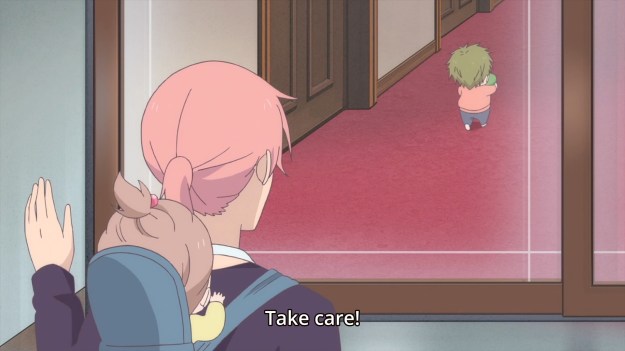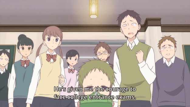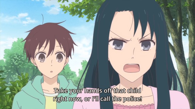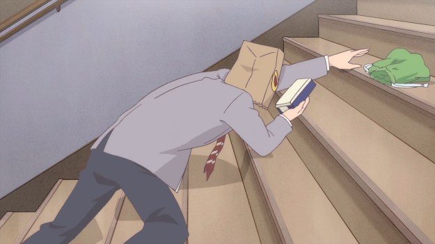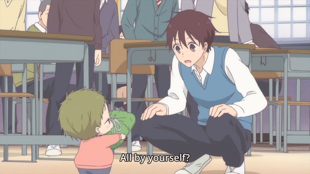 The sad part is that when all the other high schoolers see Kotaro, they don’t do anything but stare at him. Hey, it’s the kid’s first errand so… uh… we can’t interfere or something. Safety be damned.