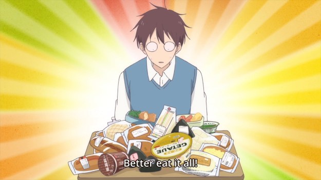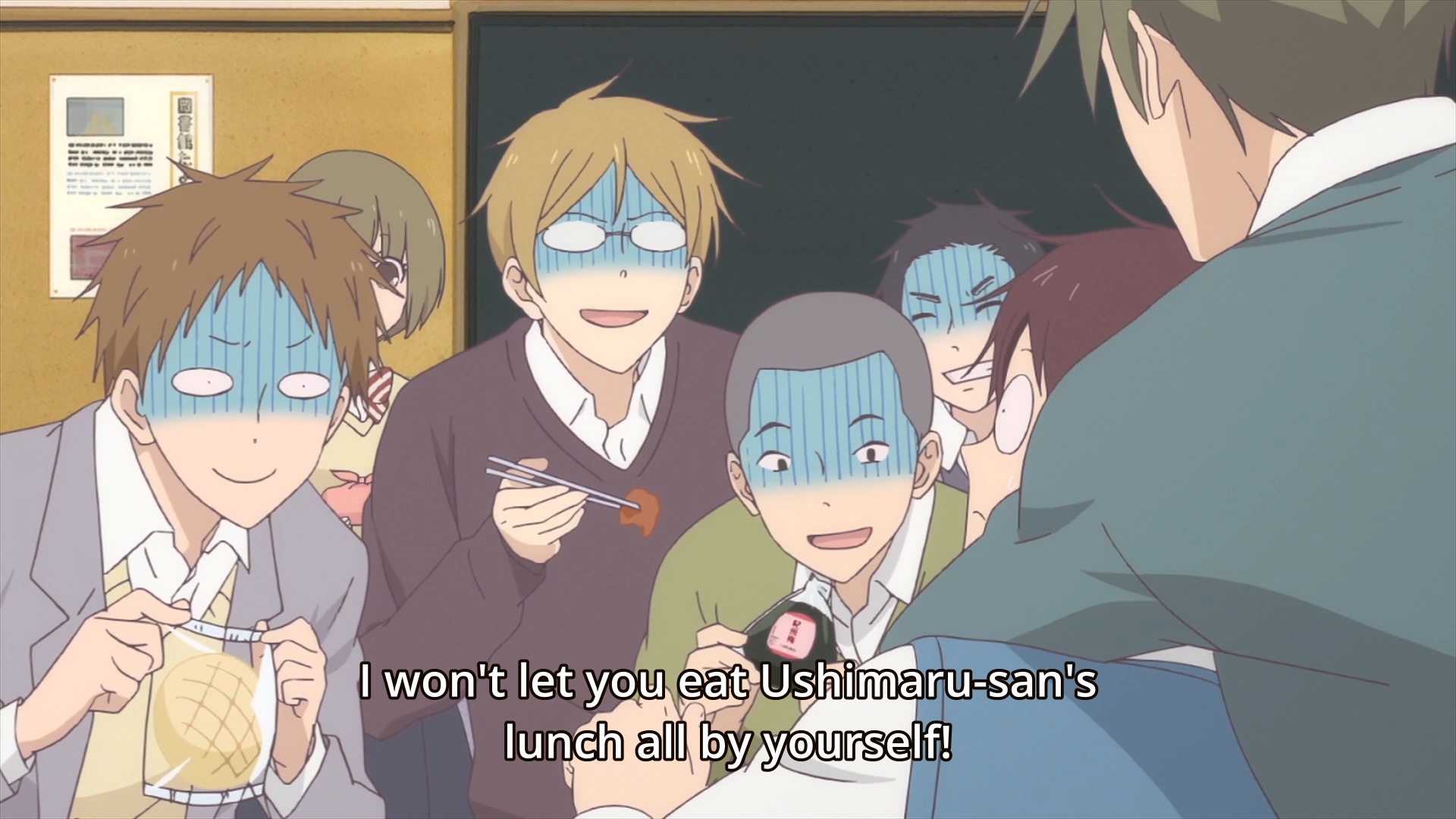 The other boys suddenly pitch in their lunches as well, because they can’t stand the idea of the main character getting to eat Yuki’s lunch.