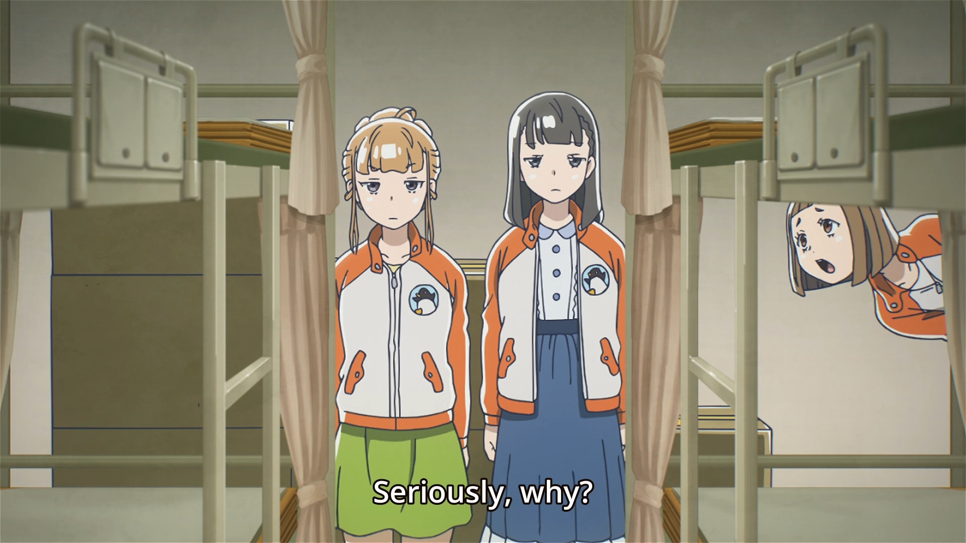 The girls finally get to board the ship in Fremantle, but it doesn’t get to leave the dock just yet. As everyone gets settled into their cramped living quarters, Yuzuki can’t help but feel as though the adults are hiding something. After all, there’s a stark lack of people on the boat; the girls thought the expedition team would be a lot bigger. Outsiders also can’t help but express their pessimism as they whisper about the potential of the trip ending in complete failure. Initially, I was afraid that Yuzuki would definitely stumbleupon a big issue, but there really isn’t one. The episode played with my expectations. Yeah, the expedition is understaffed, but that’s to be expected. After all, they’re not just a bunch of civilians embarking on a journey to the most unforgiving place on Earth. They also managed to lose their leader three years ago. That’s a huge black-eye for any organization, and it’s not surprising that the world’s confidence in them continues to be at an all-time low. Sponsors have withdrawn their financial support, and likewise, for some unlucky members of the team, loved ones have withdrawn their emotional support.