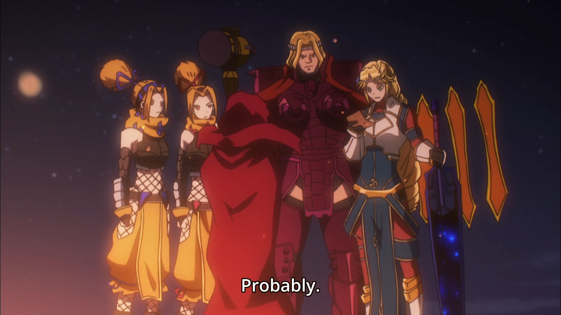 — Solution is concerned that housing Tuare will bring trouble to their doorsteps. After all, their mission is to collect information, so they don’t exactly want to alert people to their presence. You could argue that Solution is merely being practical, but then I would counter that general compassion for others will eventually lead to her benefit down the line. Then we’d get into a quagmire of a debate about altruism, utilitarianism, blah blah blah. It’s not worth it for Overlord.